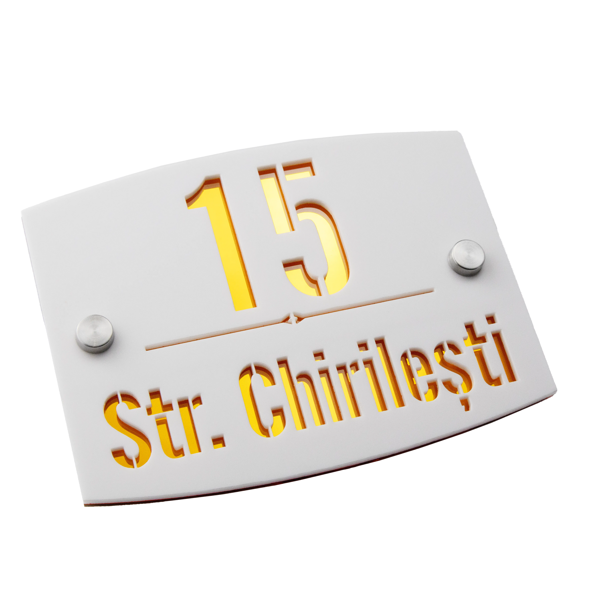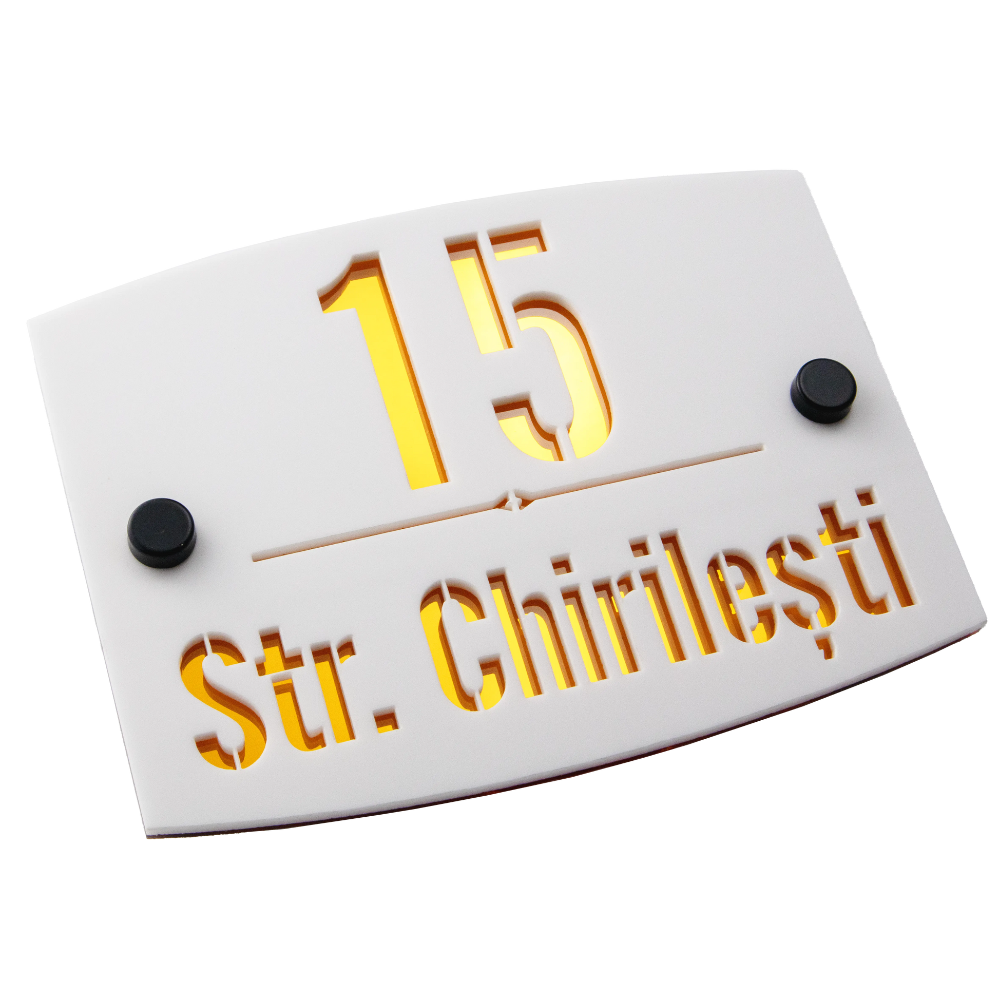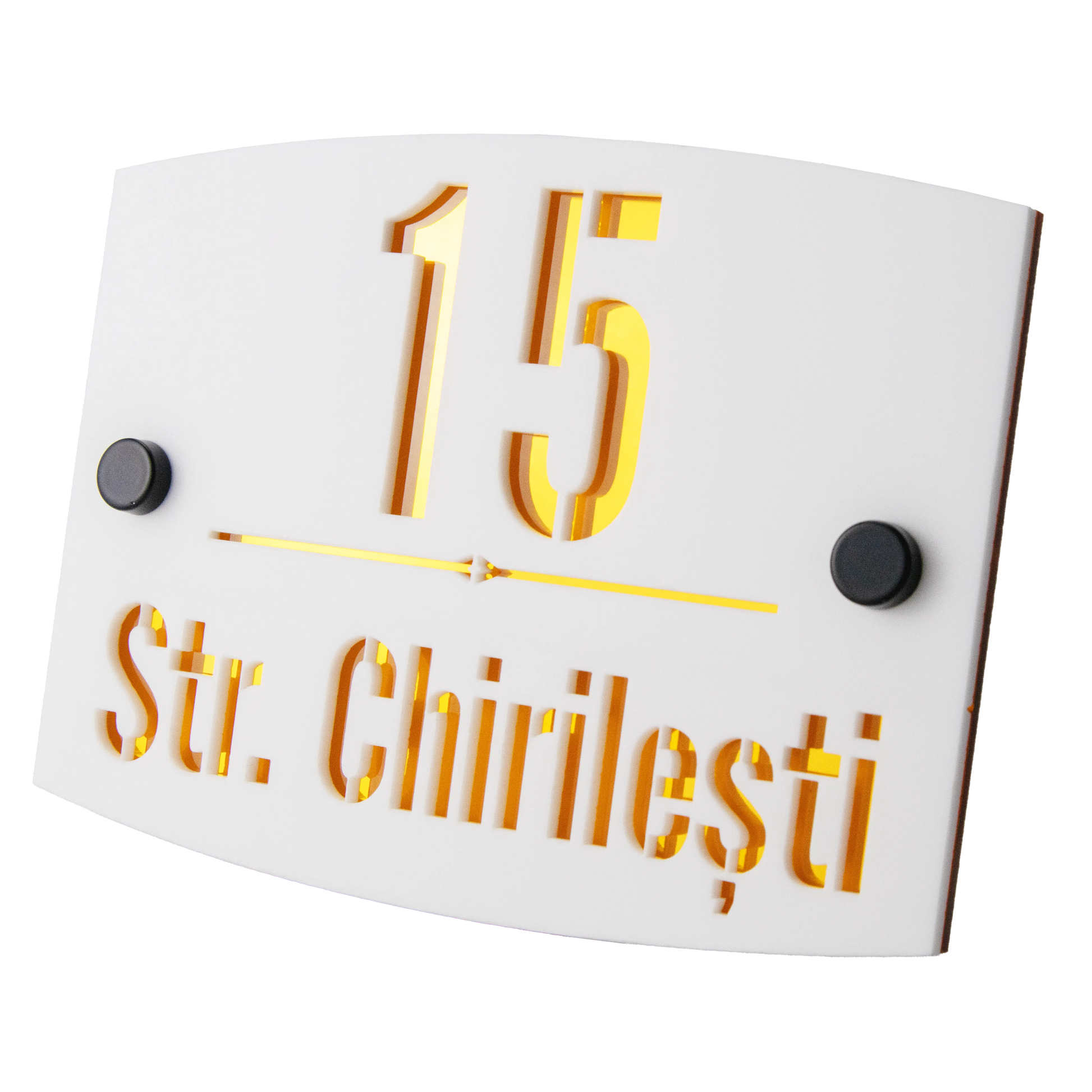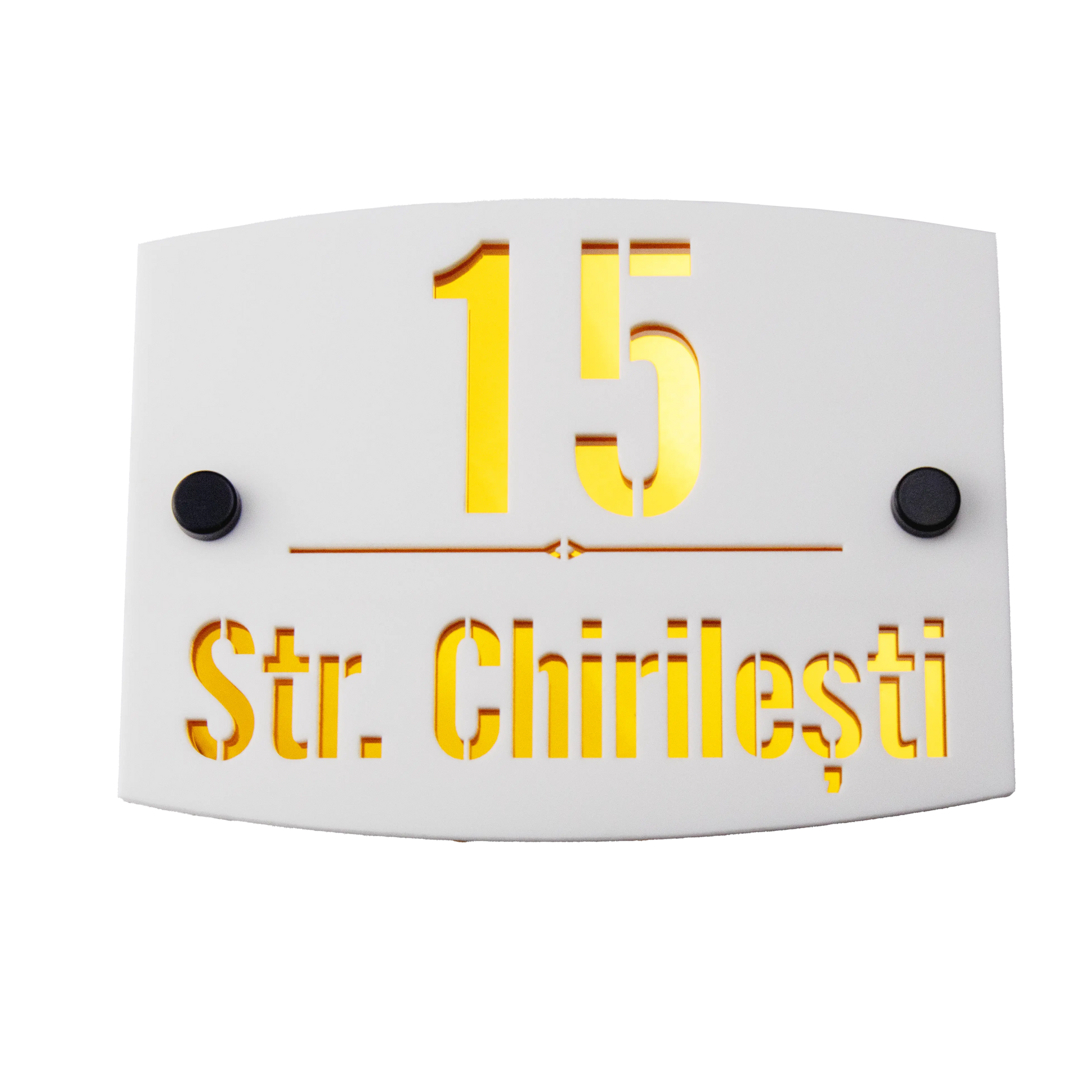 Alege Numarul de casa Arcadia 16x12cm – Alb/Amber Oglinda pentru o combinatie perfecta intre eleganta si vizibilitate.