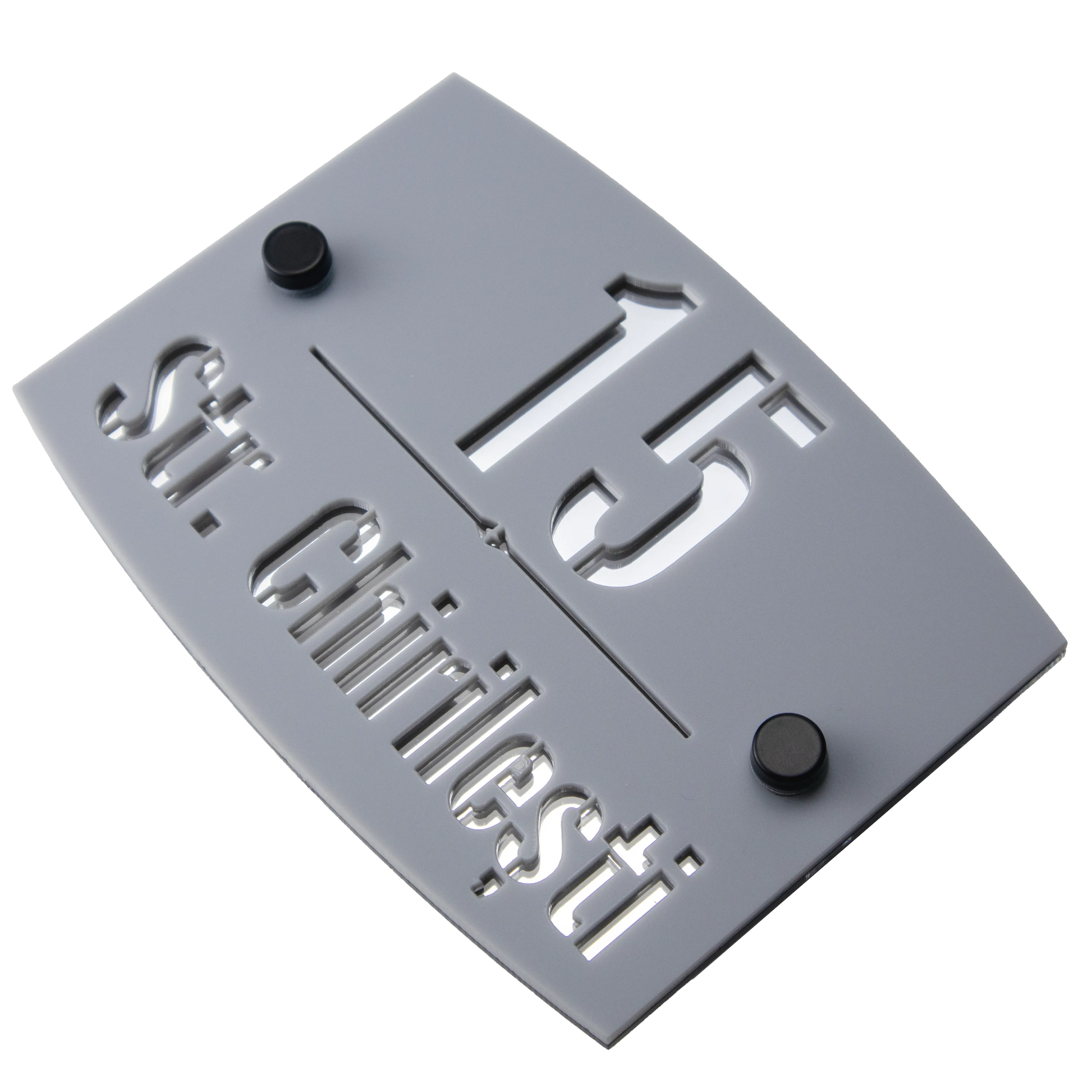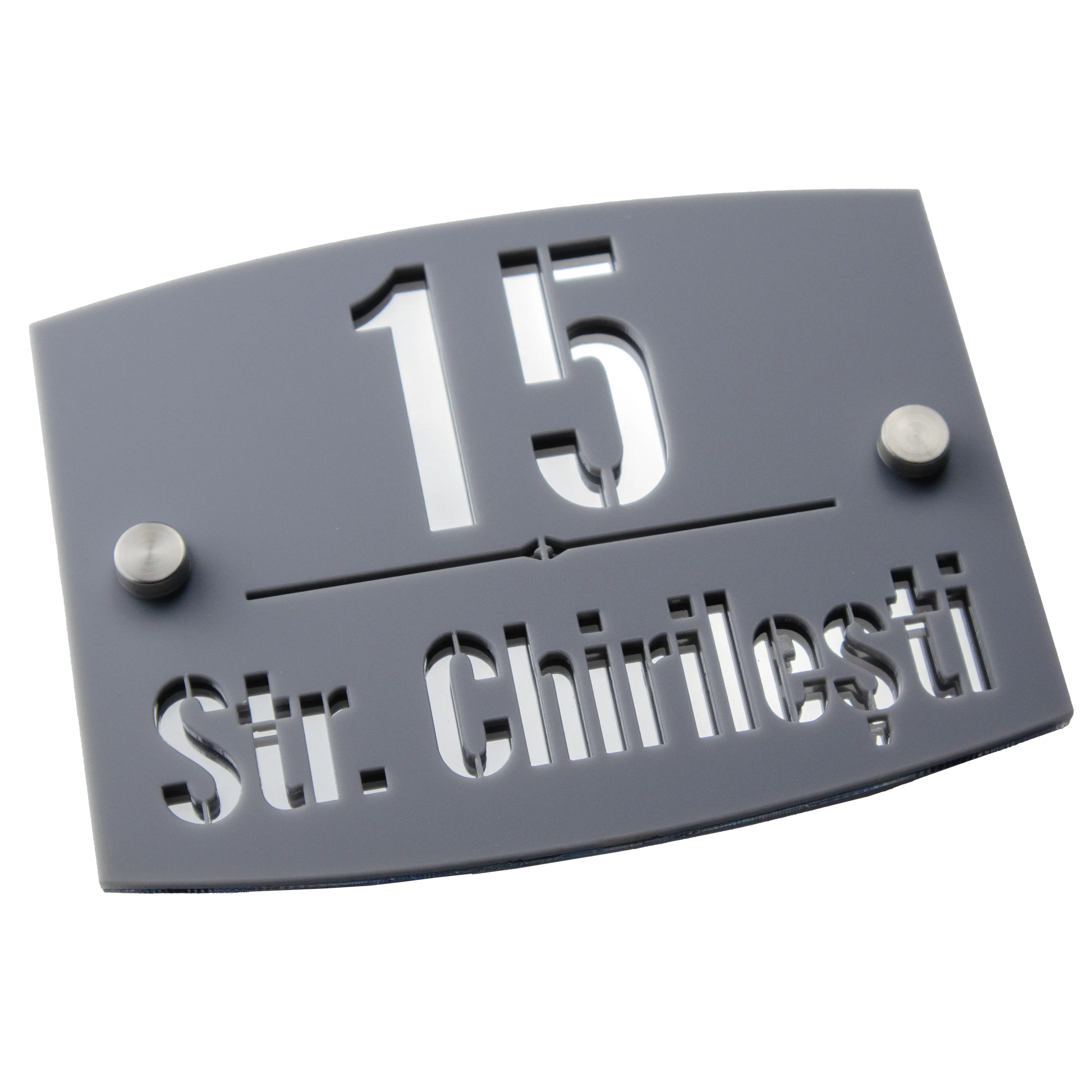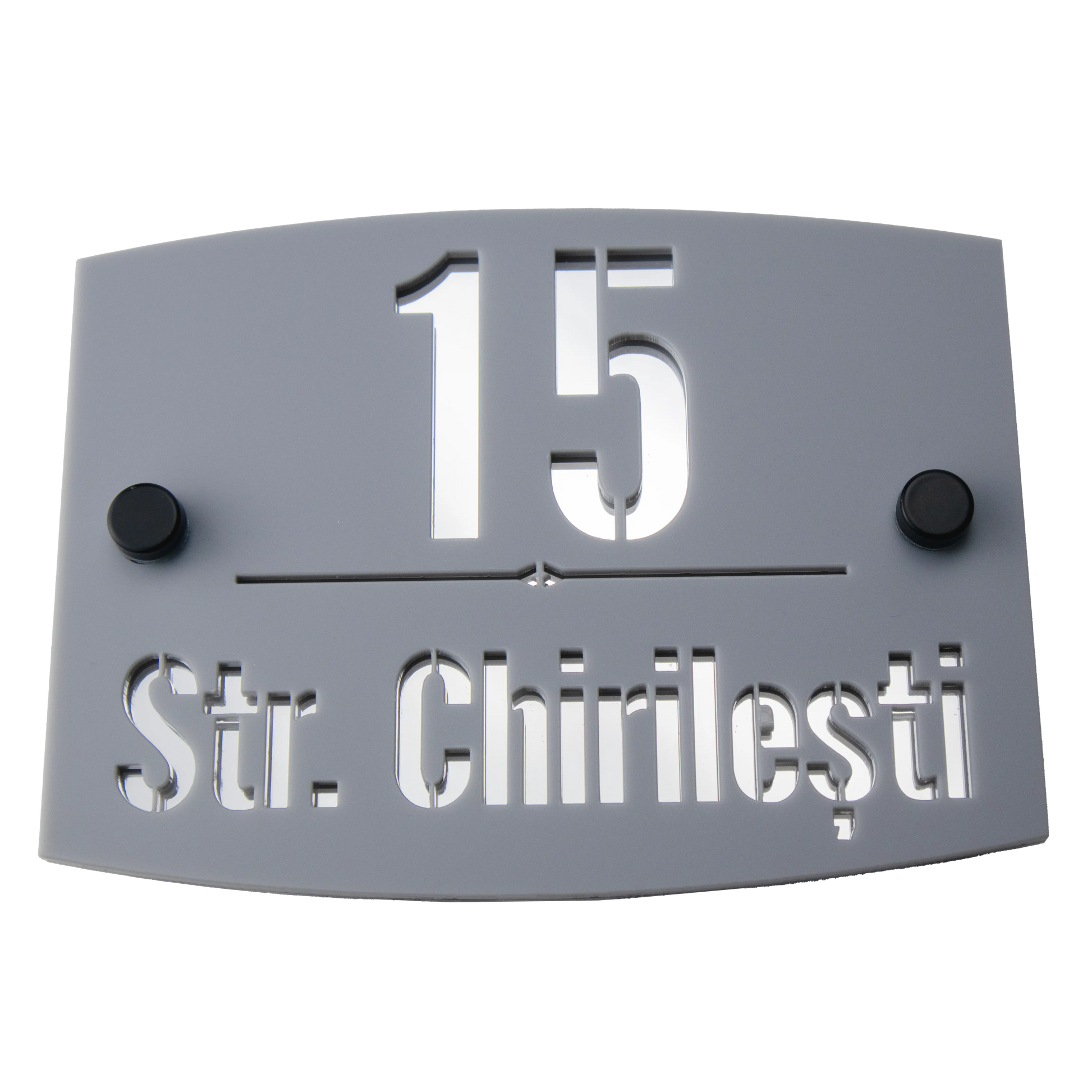 Alege Numarul de casa Arcadia 16x12cm – Gri/Argintiu Mirror pentru un aspect discret, dar deosebit de elegant.