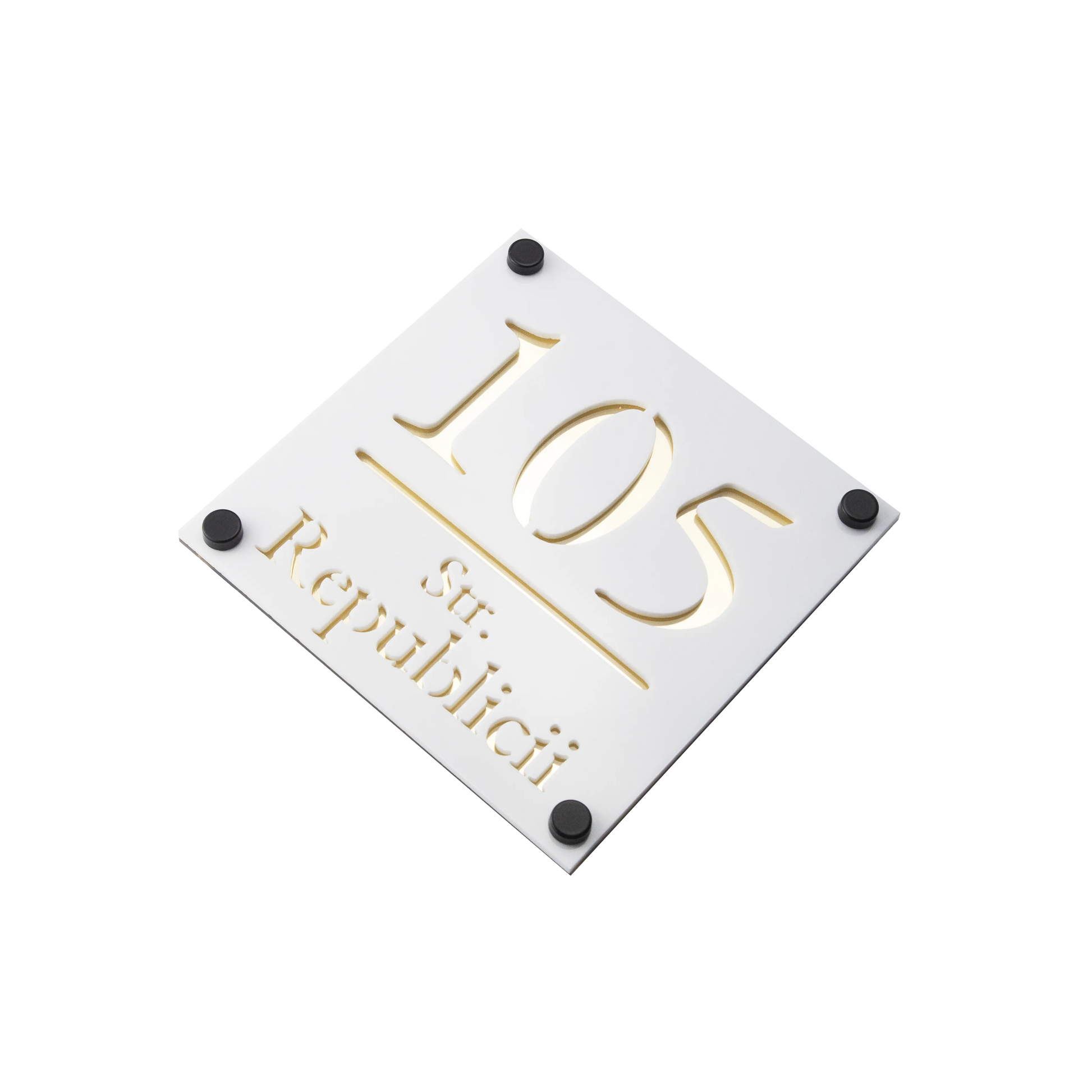 Adauga un strop de lux casei tale cu Numarul de casa Imperial 16x16 – Alb/Auriu Oglinda.