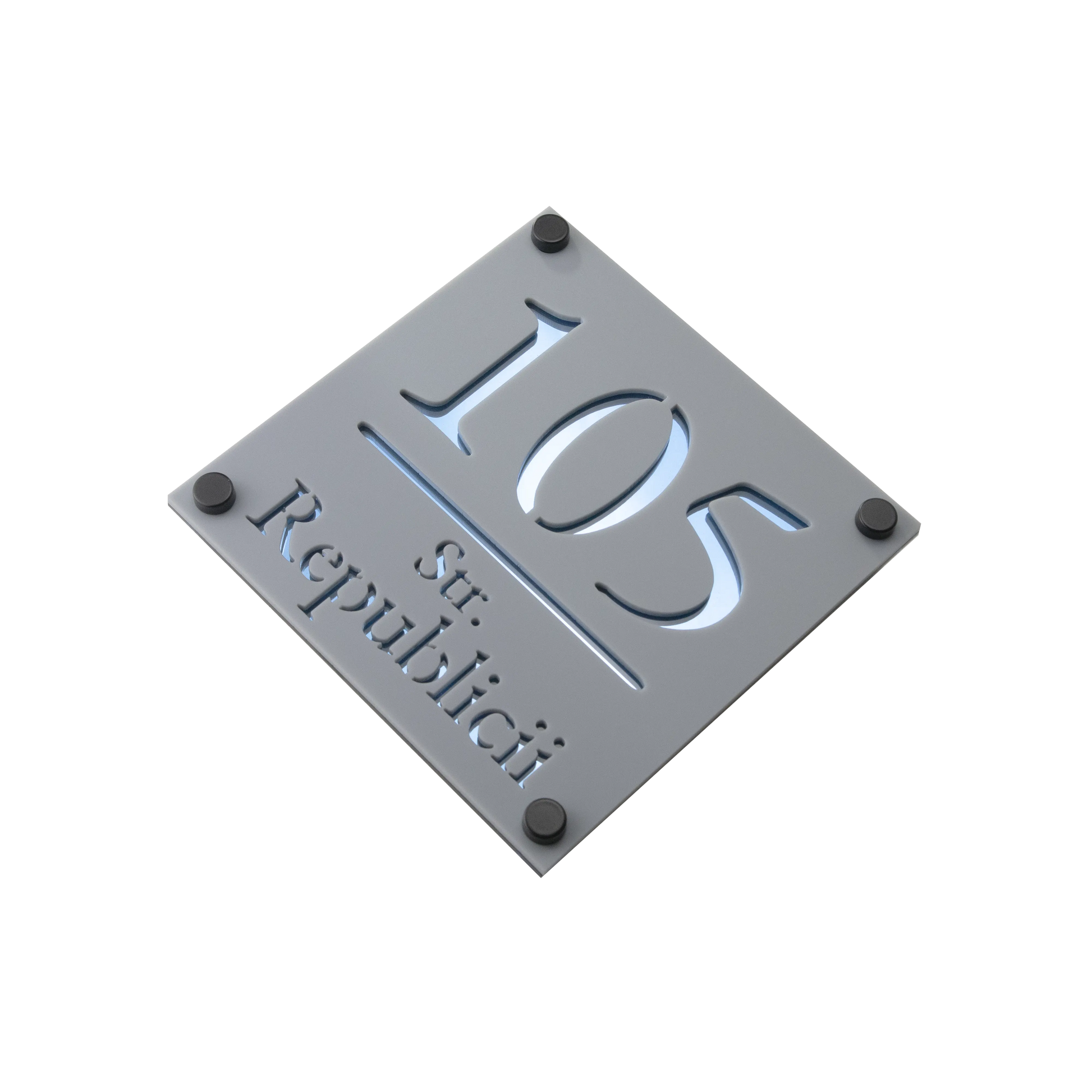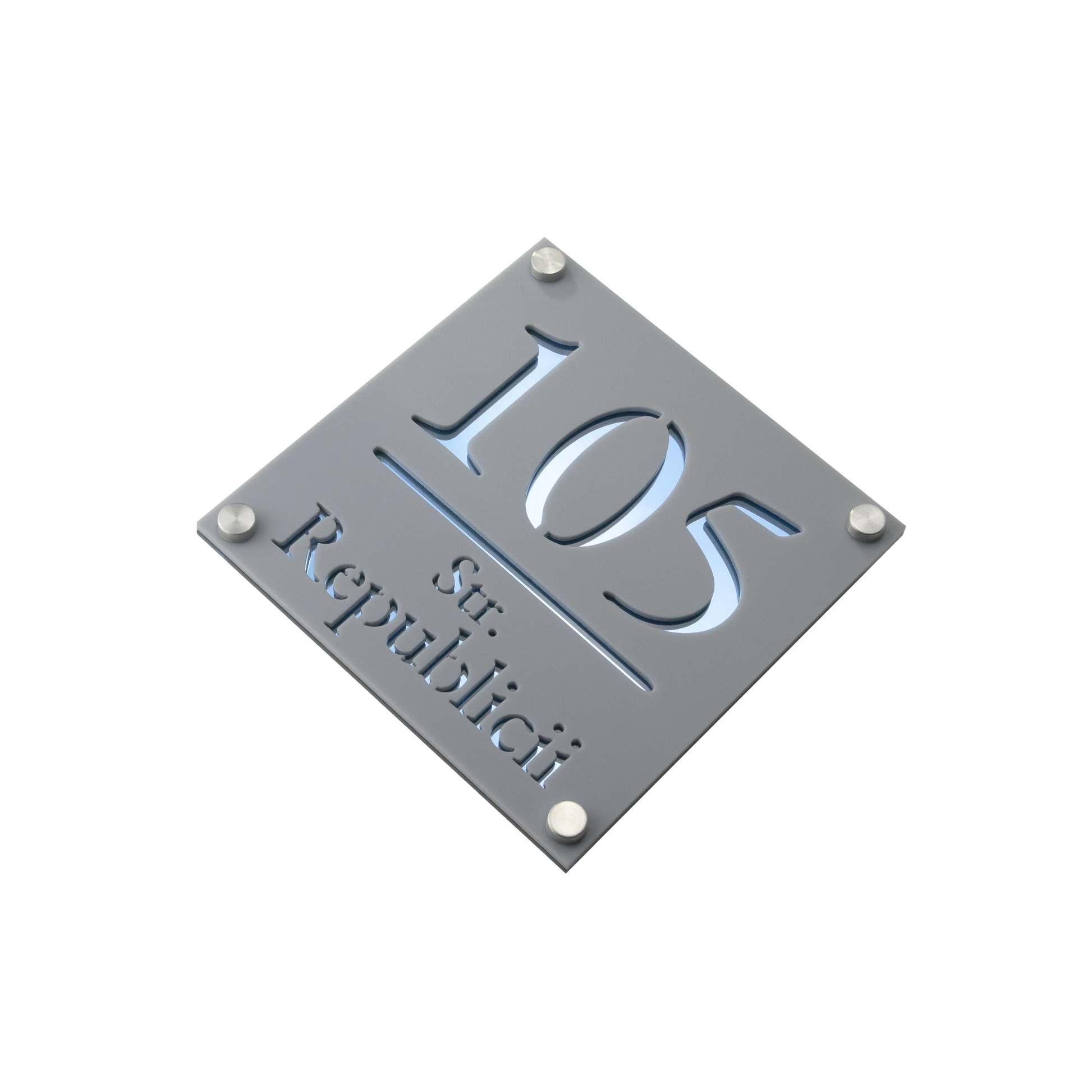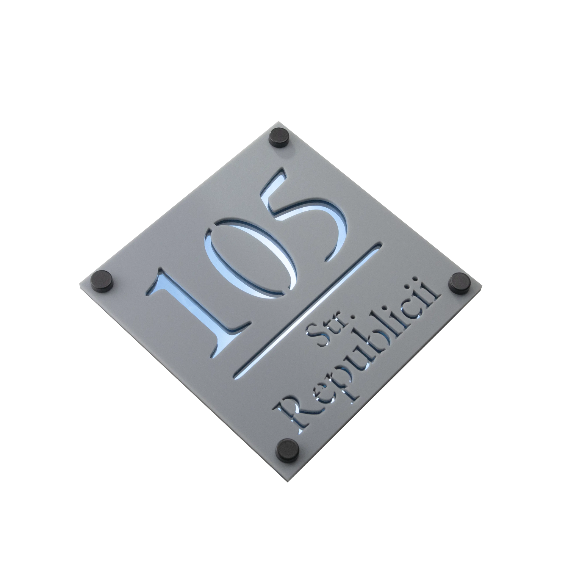 Numar de casa Imperial 16x16 – Gri/Aqua Blue Oglinda