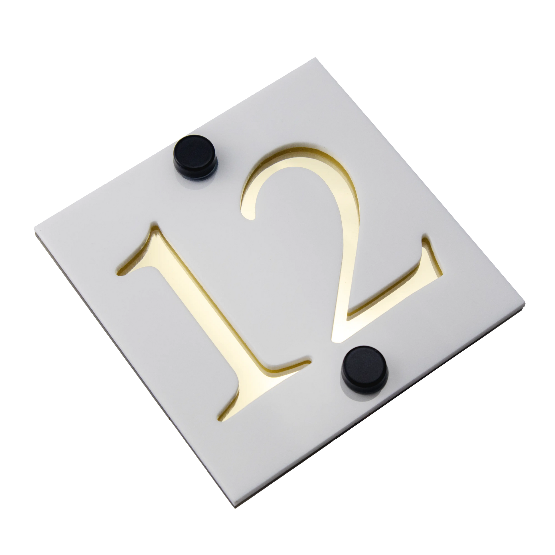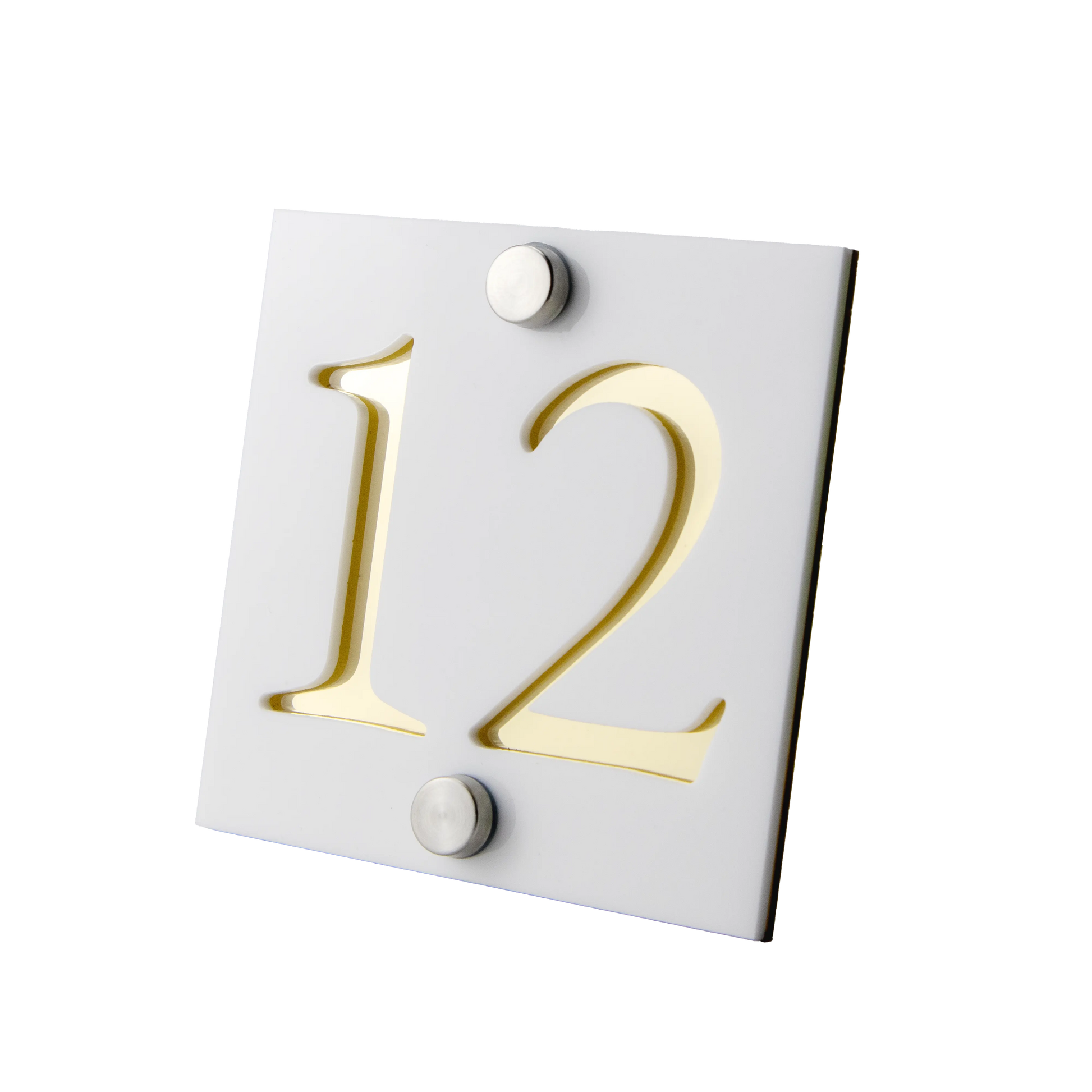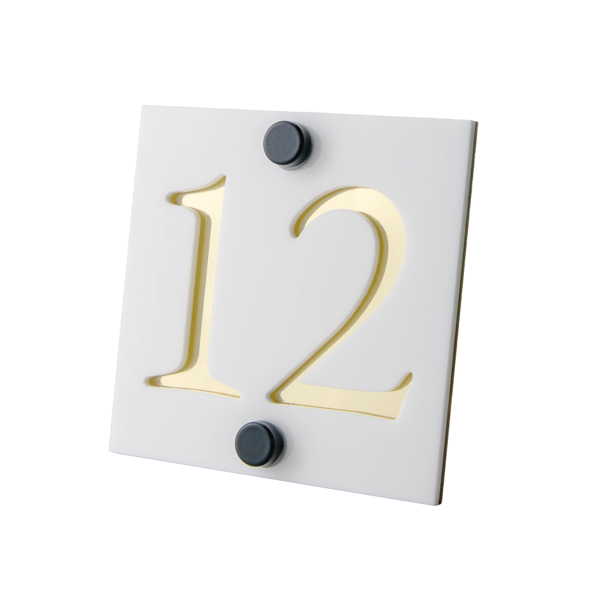 Numar de casa Prestige 10x10 – Alb/Auriu Oglinda