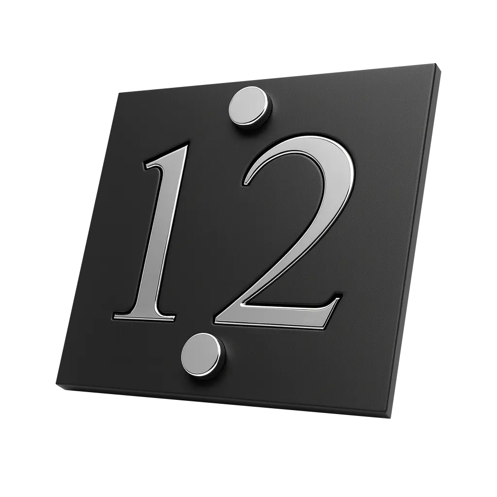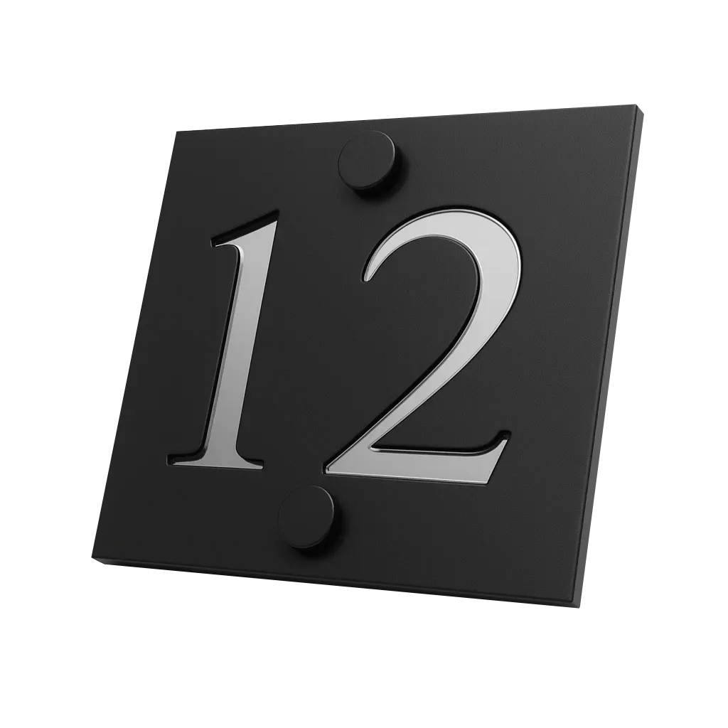Fabricată din acril rezistent, plăcuța se remarcă prin combinația elegantă dintre stratul frontal negru și fundalul argintiu oglindă. Efectul vizual este modern și curat, iar contrastul puternic asigură vizibilitatea numărului atât ziua, cât și noaptea. Designul minimalist se potrivește perfect pe fațade contemporane sau clasice.