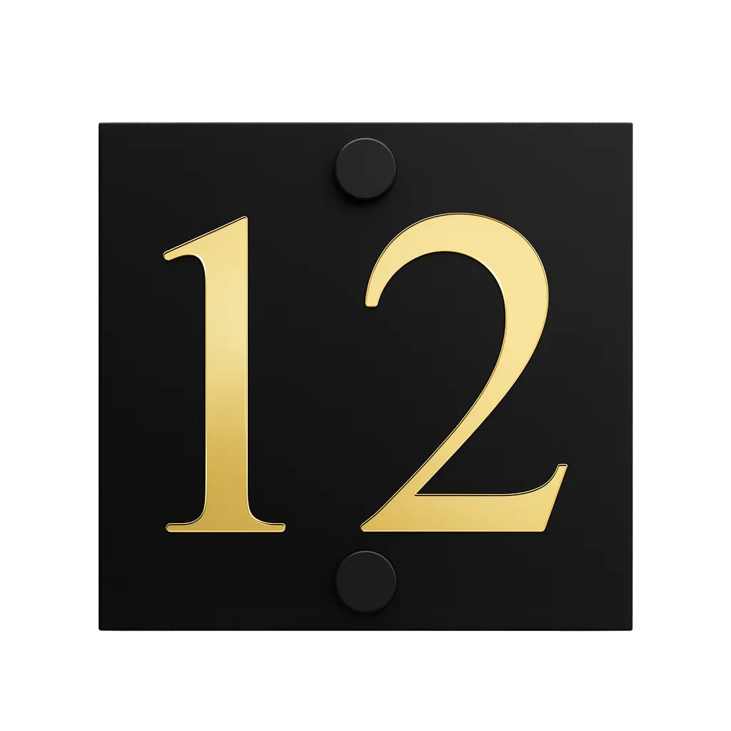 Alege numărul de casă Prestige 10x10cm – Negru/Auriu Oglindă și adaugă un accent premium locuinței tale!