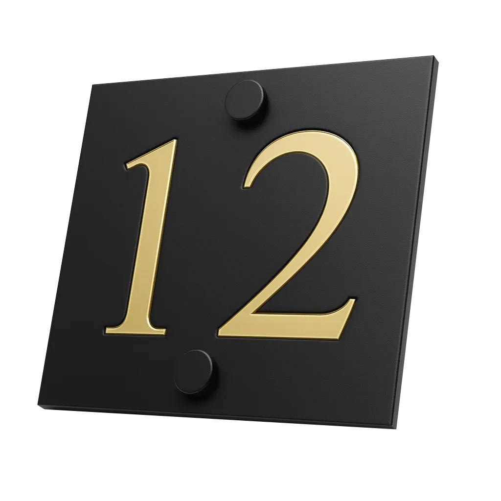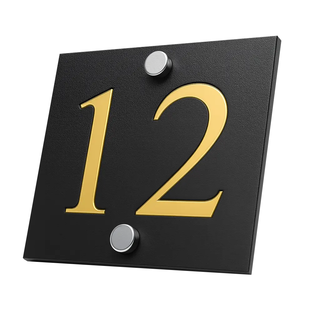 Fabricată din acril de calitate, plăcuța combină stratul frontal negru cu un fundal auriu oglindă, creând un efect vizual deosebit și luxos. Reflexiile aurii scot în evidență numărul chiar și de la distanță, adăugând un accent rafinat și modern fațadei.