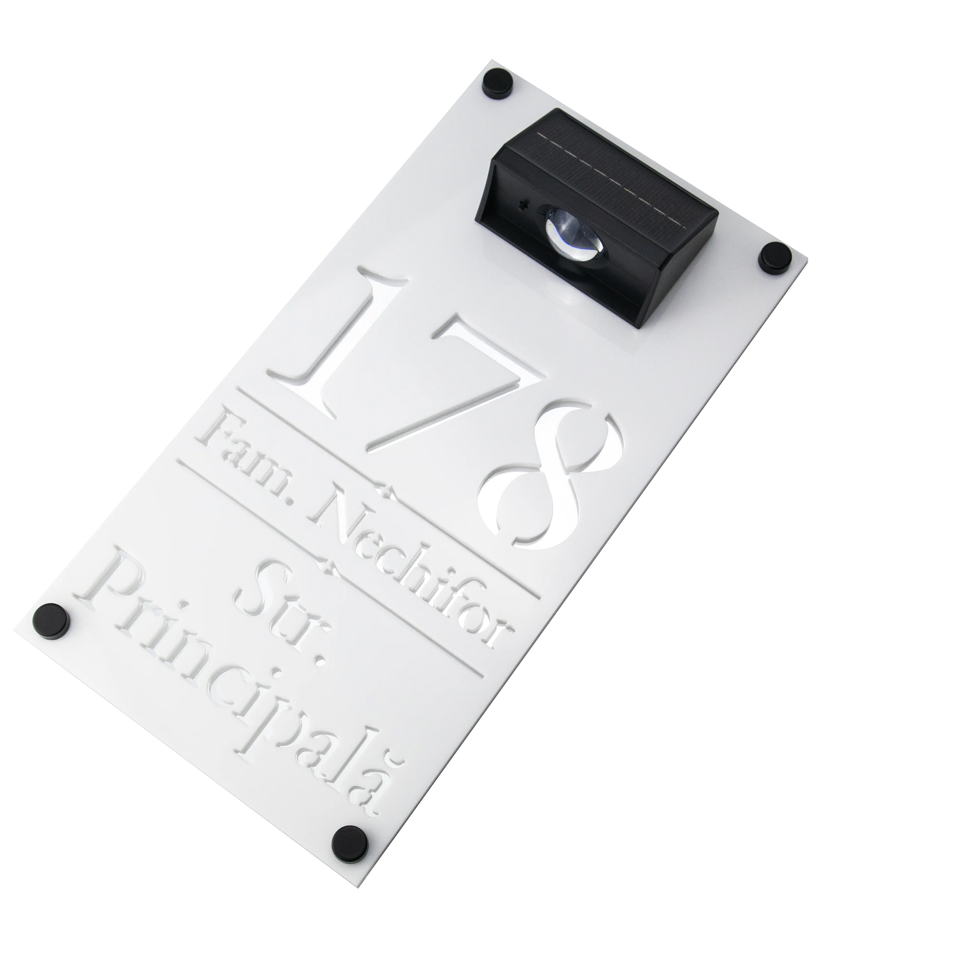 Fabricat din acril premium de 6 mm, este durabil si elegant. Se monteaza rapid cu distantieri metalici si ramane un detaliu estetic de durata pe orice fatada.