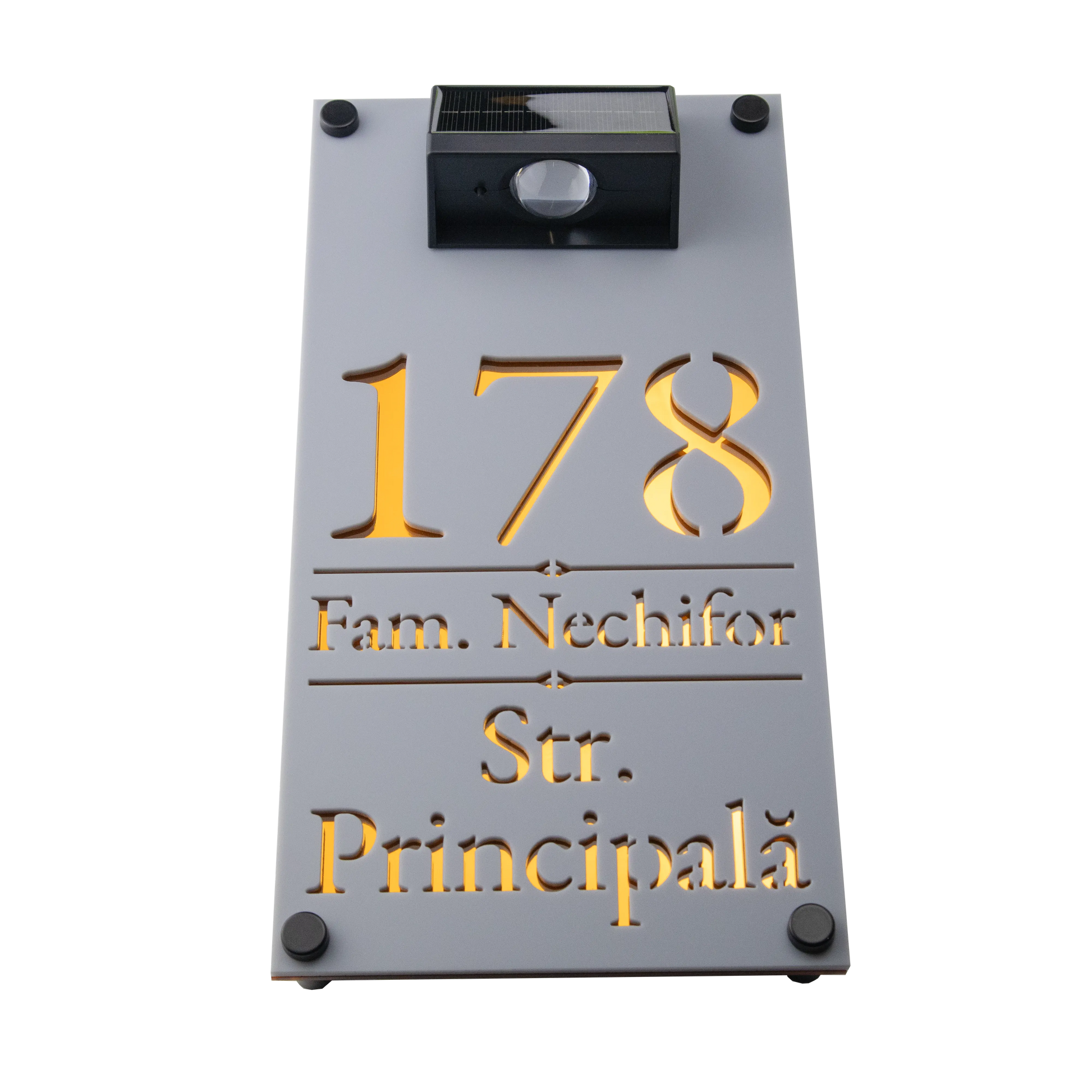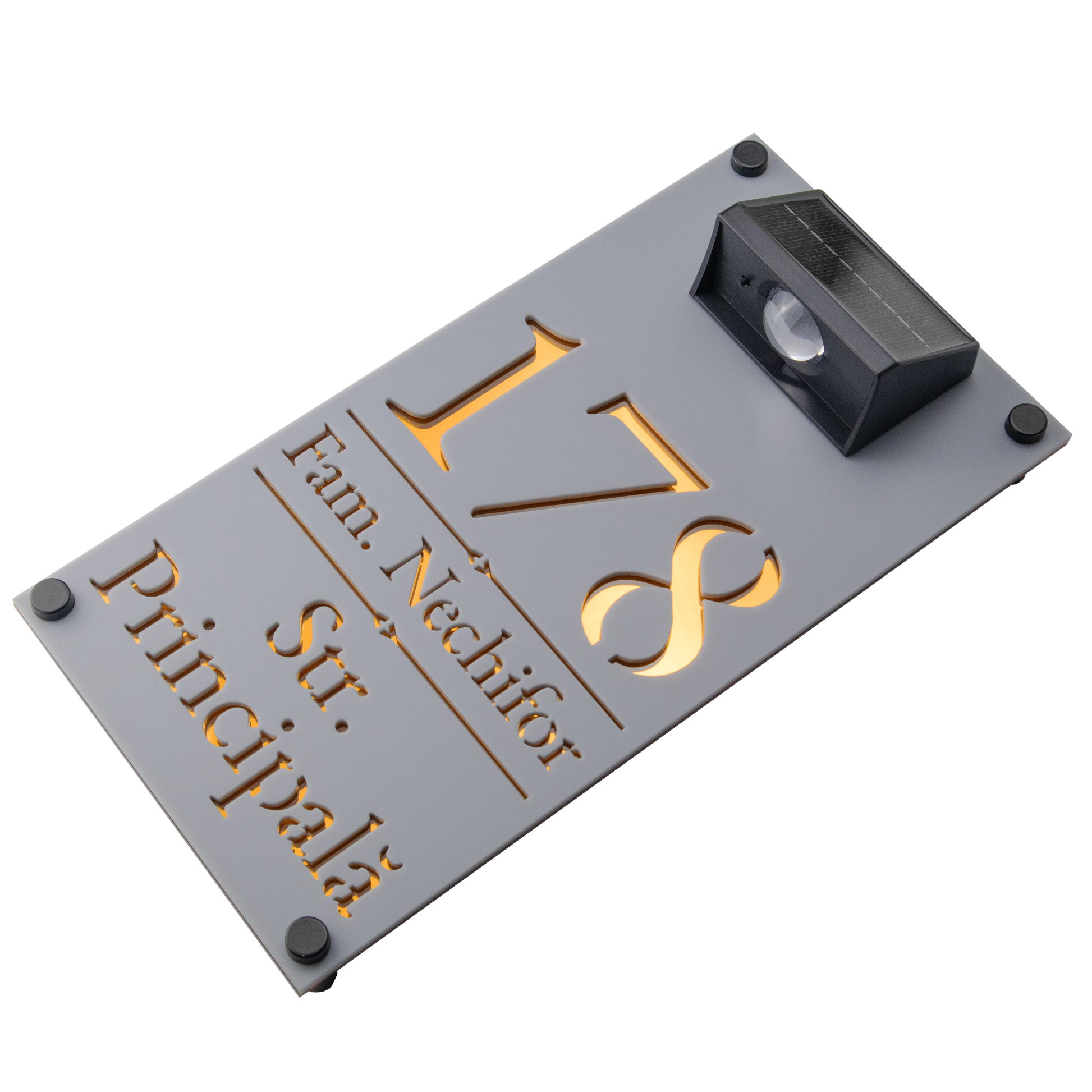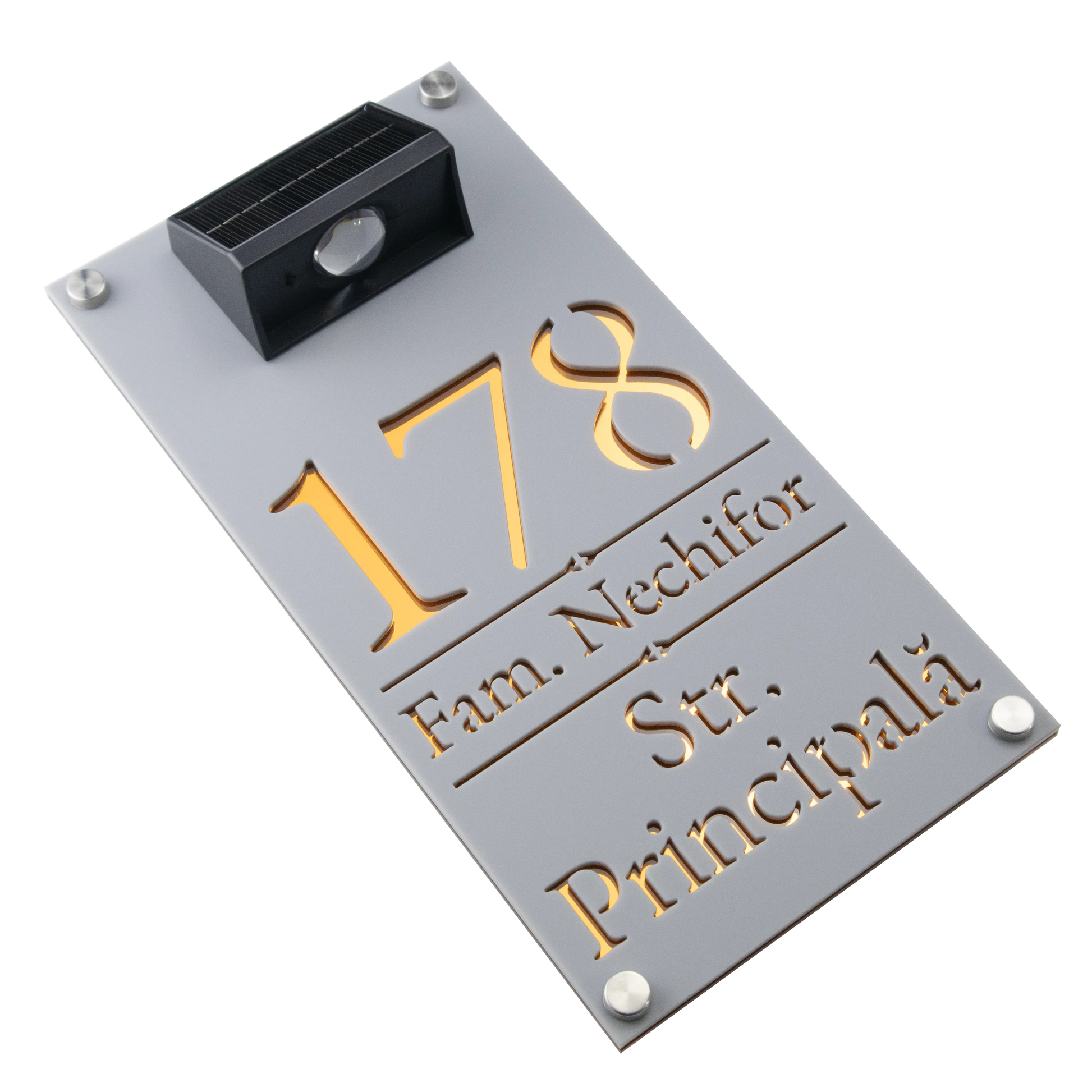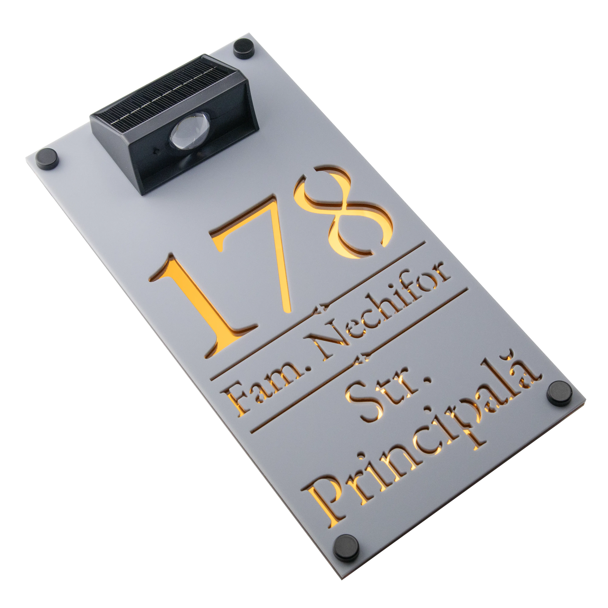 Numar de casa cu lampa solara led RGB Solar Premium 29x15 – Gri/Amber Oglinda