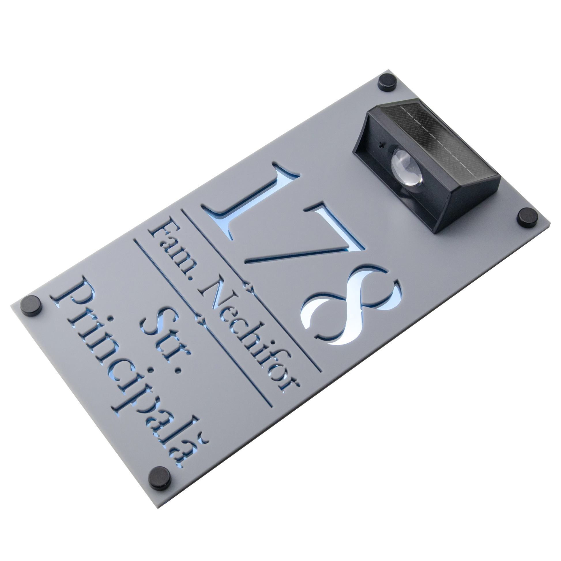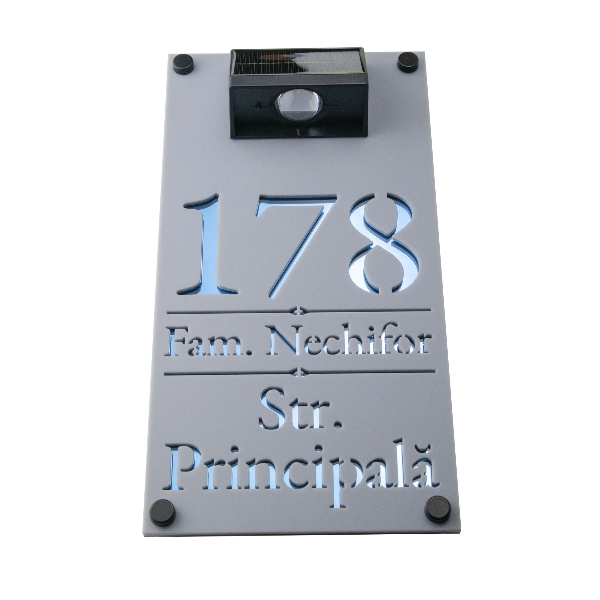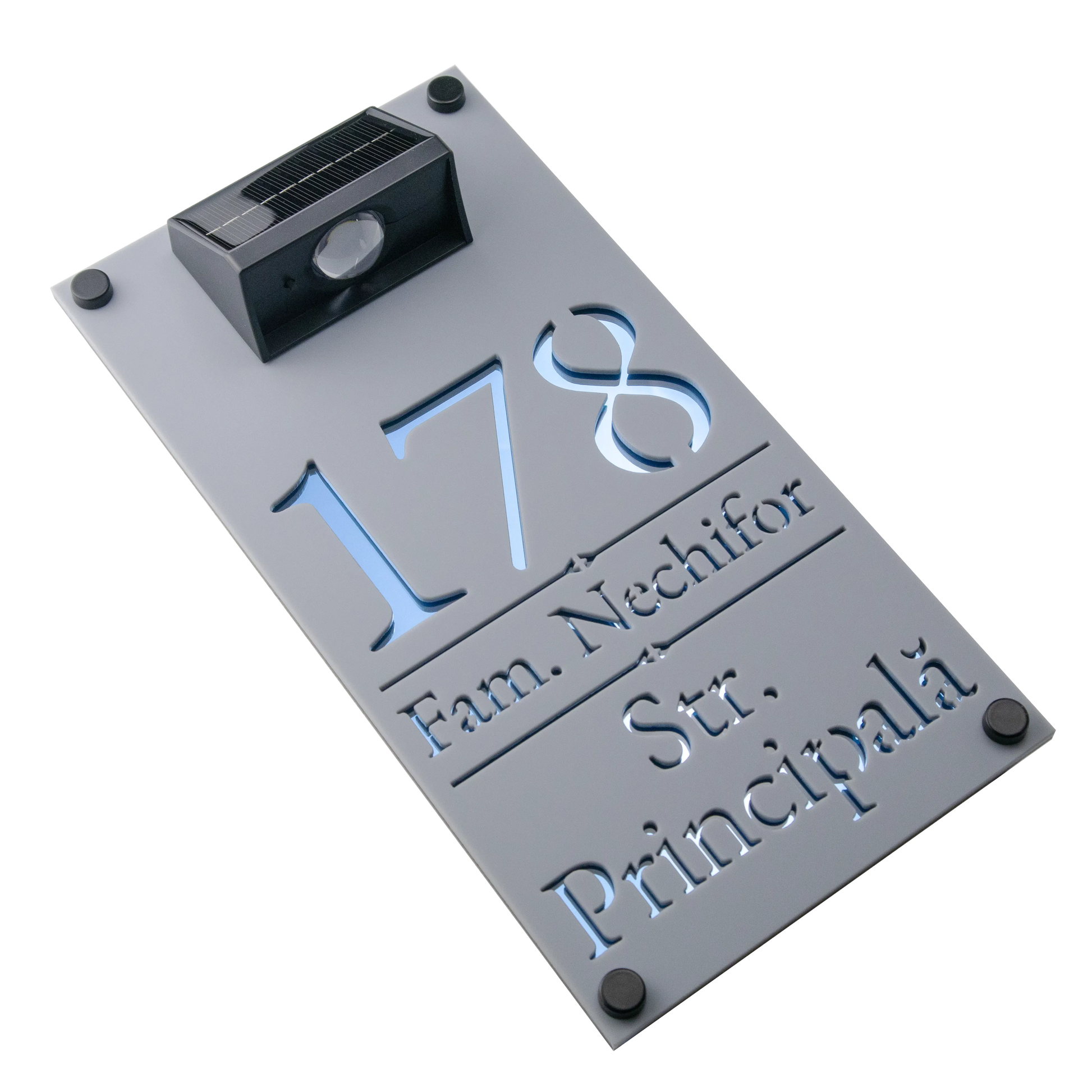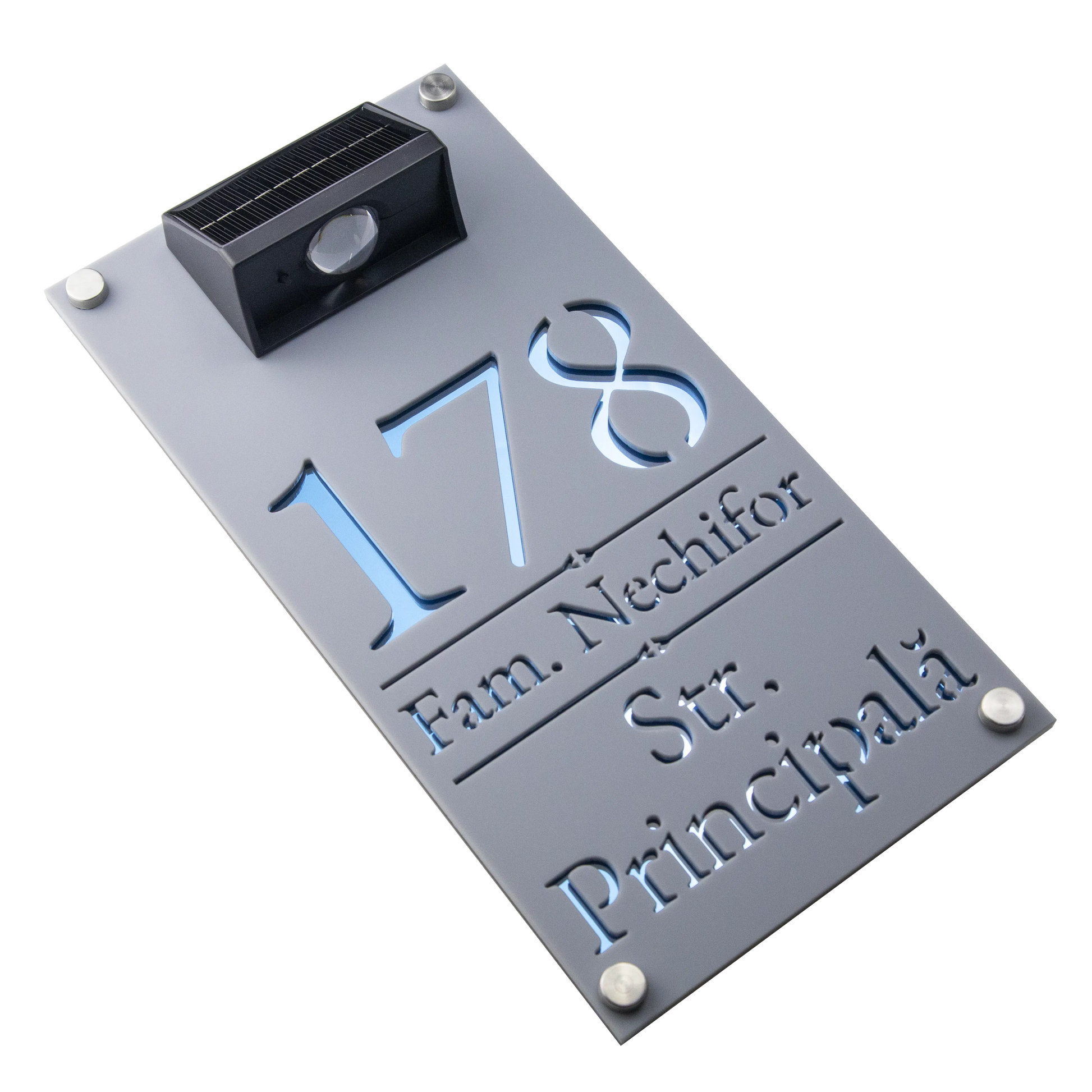 Numar de casa cu lampa solara led RGB Solar Premium 29x15 – Gri/Aqua Blue Oglinda