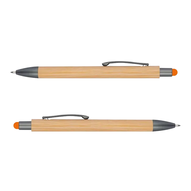 Capul cu functie touchpen ofera un plus de versatilitate, permitand utilizarea pe telefoane si tablete, ceea ce il transforma intr-un instrument indispensabil pentru birou, conferinte sau intalniri de afaceri. Designul ergonomic asigura confort la scriere, iar materialul din bambus natural transmite grija pentru mediu si profesionalism.