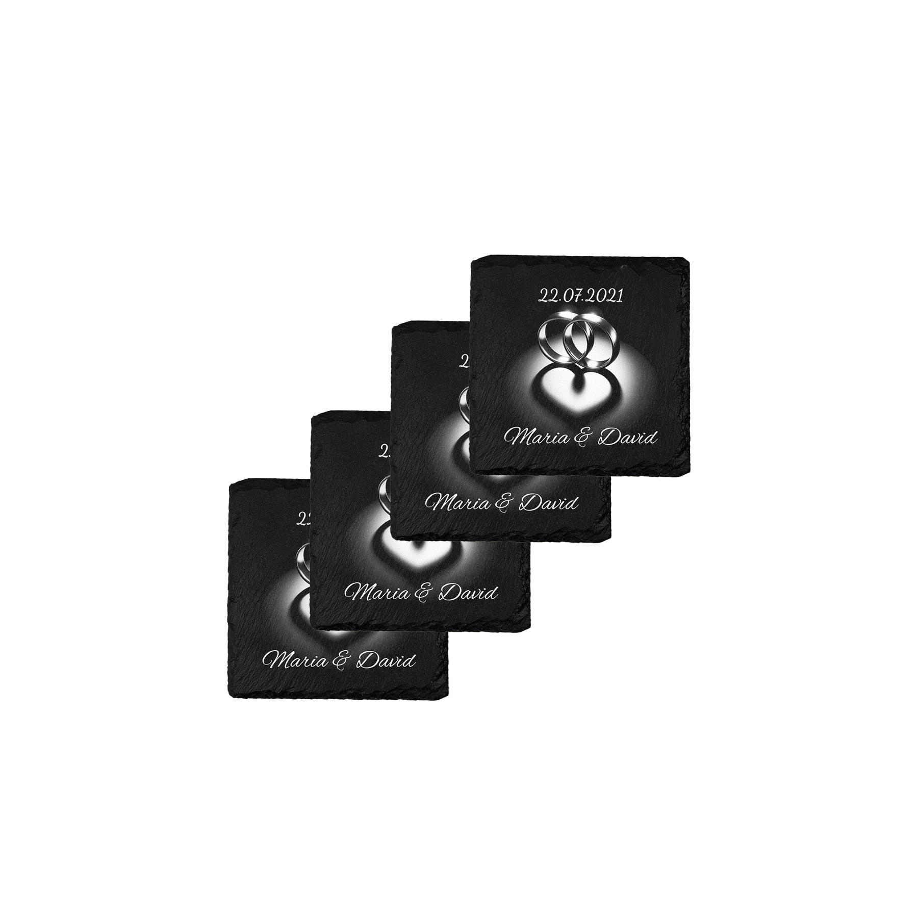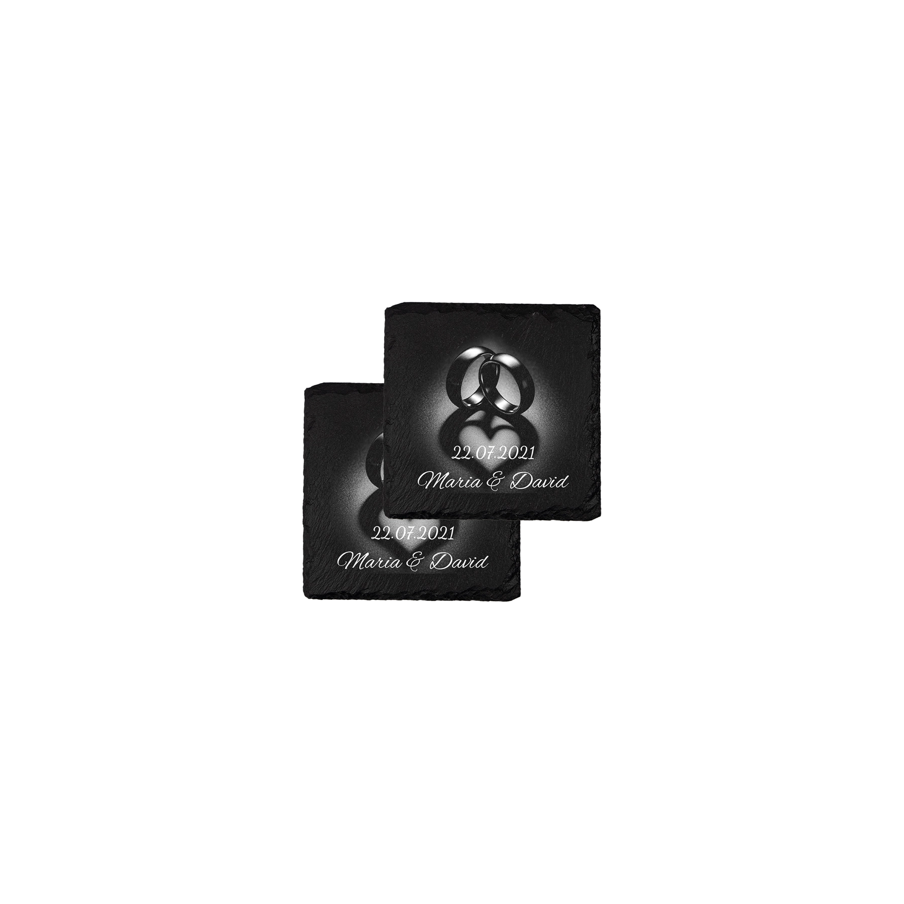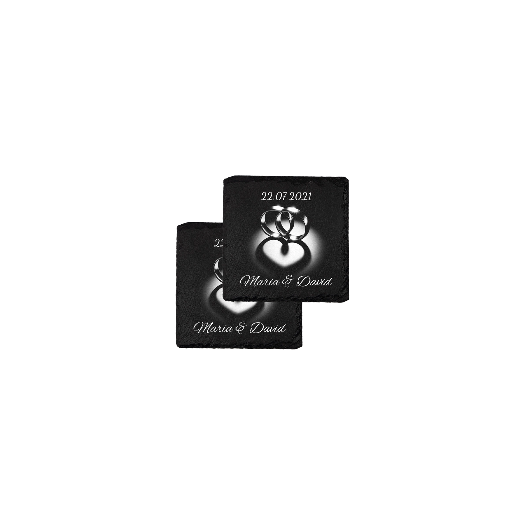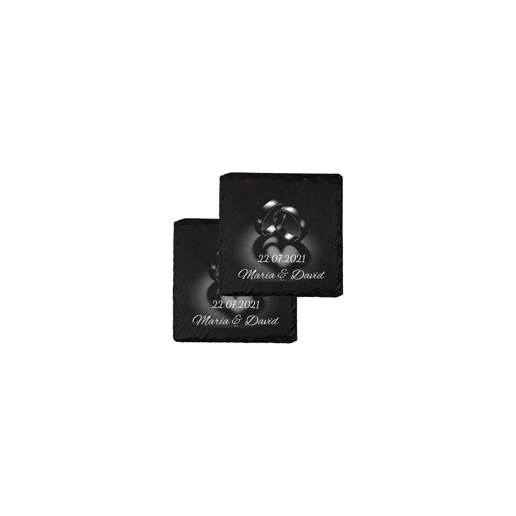 Set coastere patrate din ardezie personalizate - Heart Rings