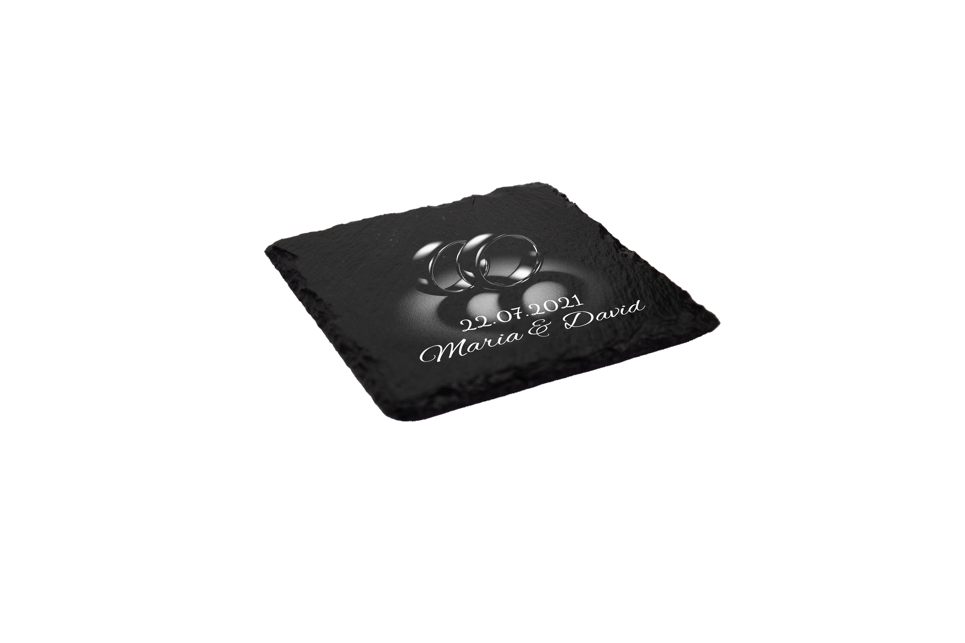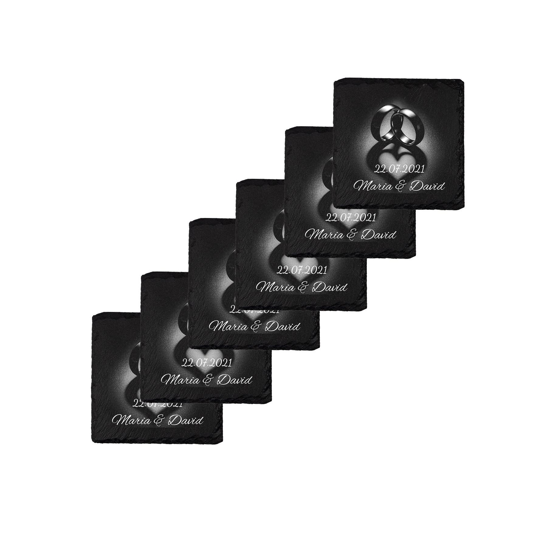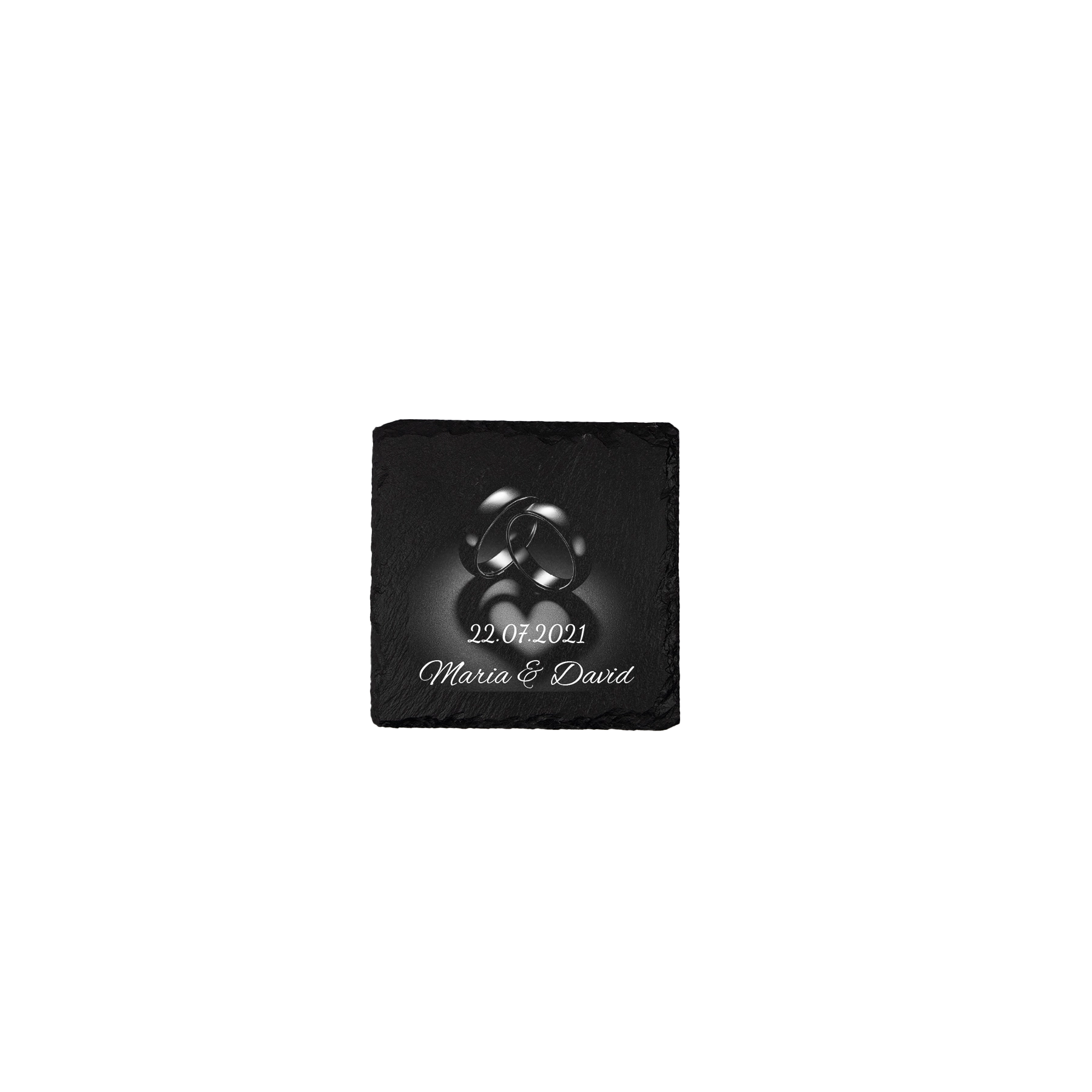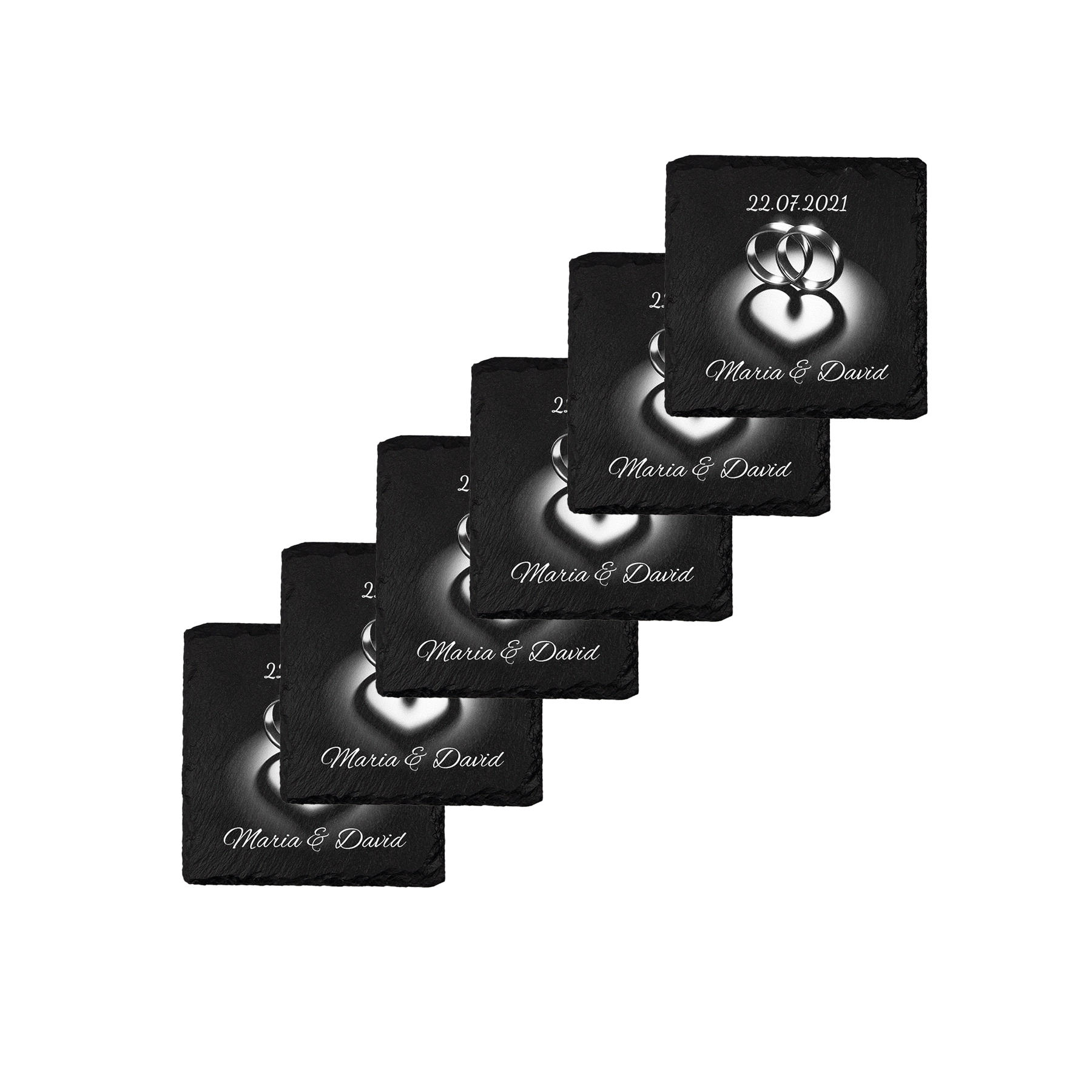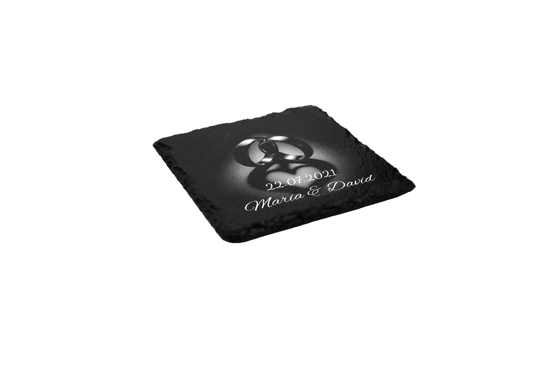 Set coastere patrate din ardezie personalizate - Heart Rings