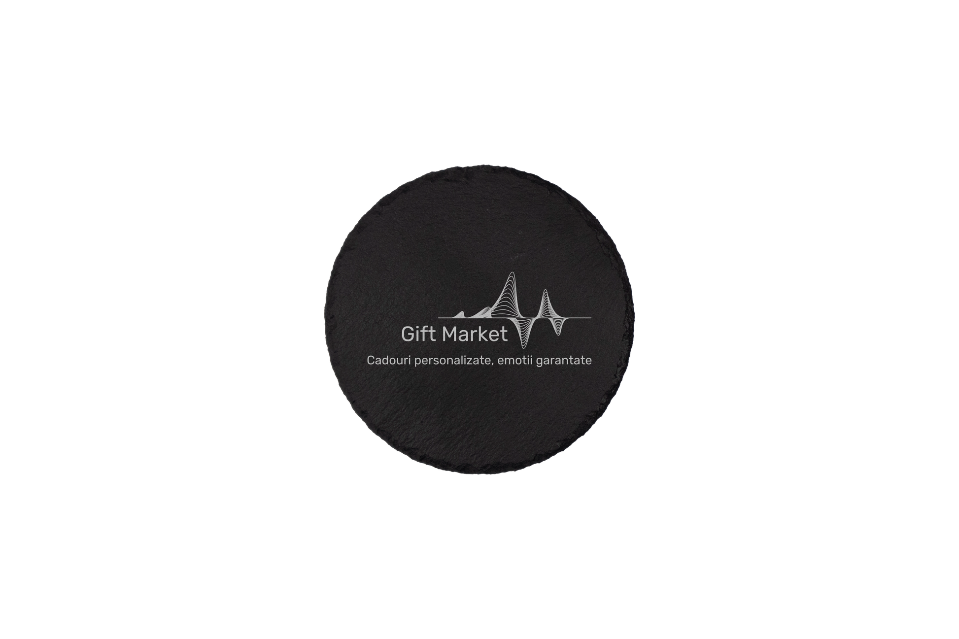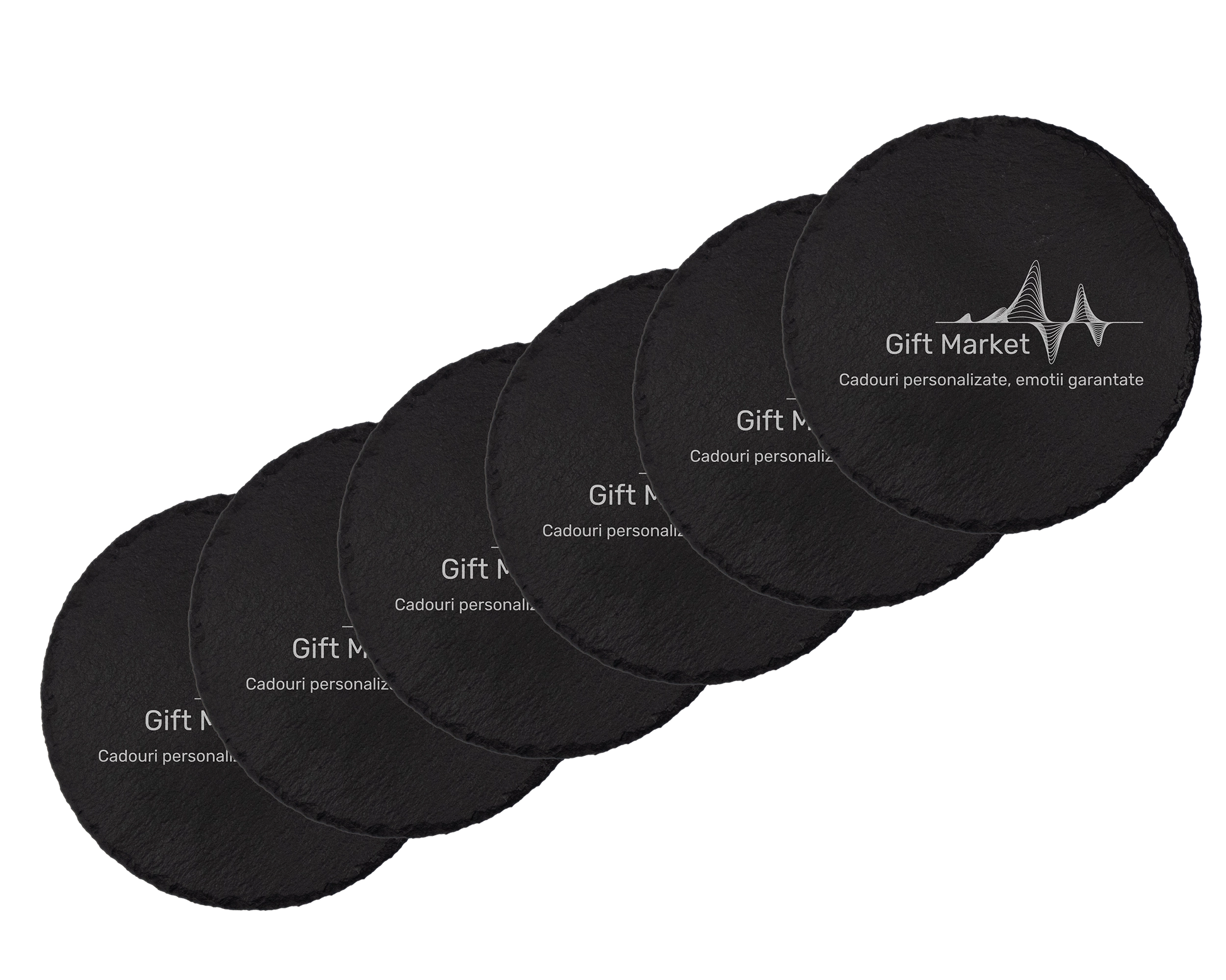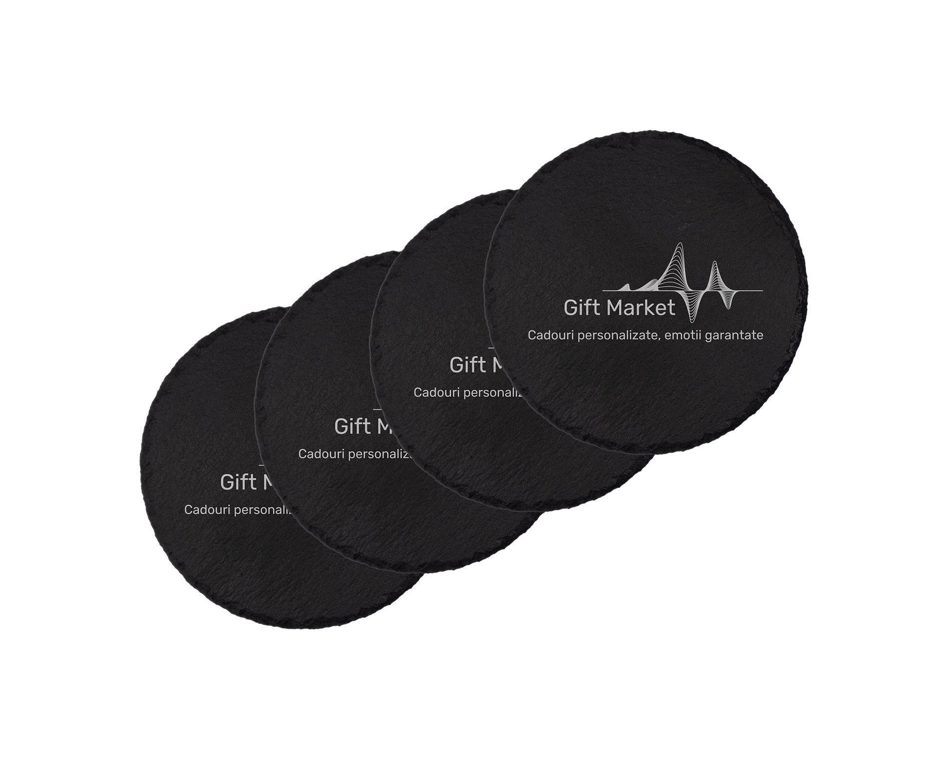 Set coastere rotunde din ardezie personalizate - Logo Companie