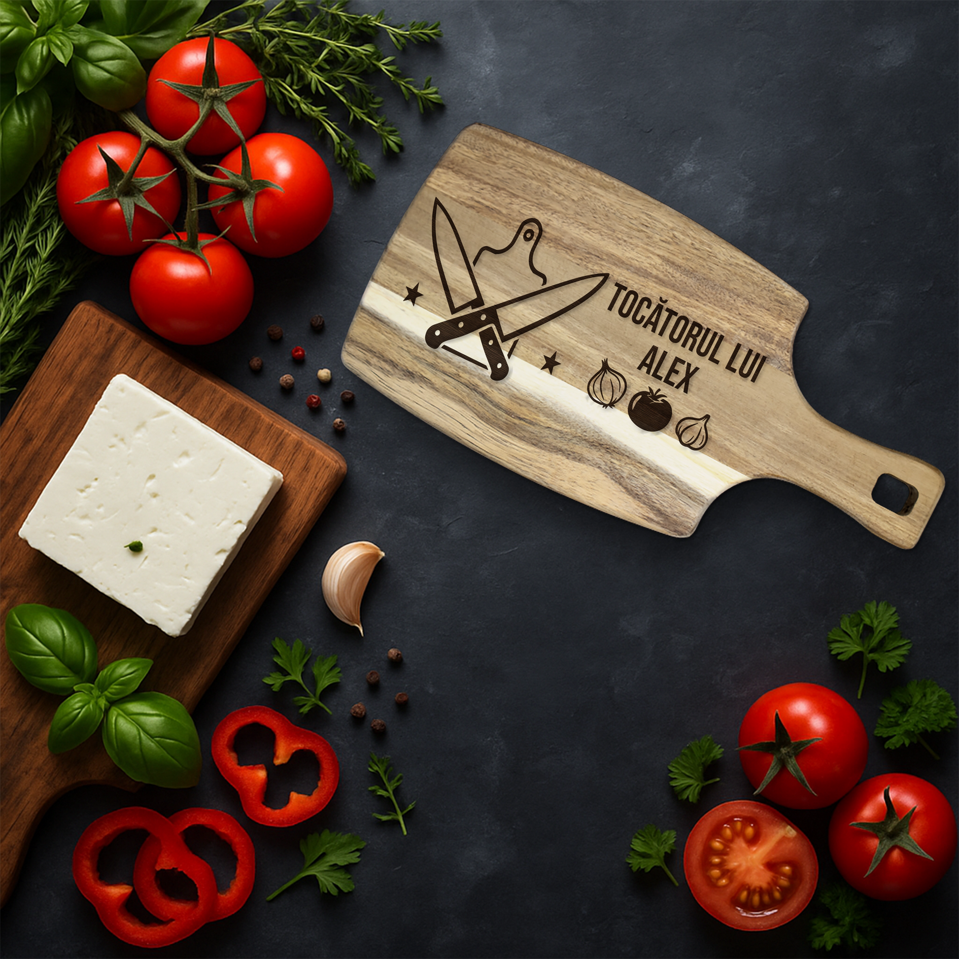 Tocator Branzeturi Premium Personalizat - Design Rustic