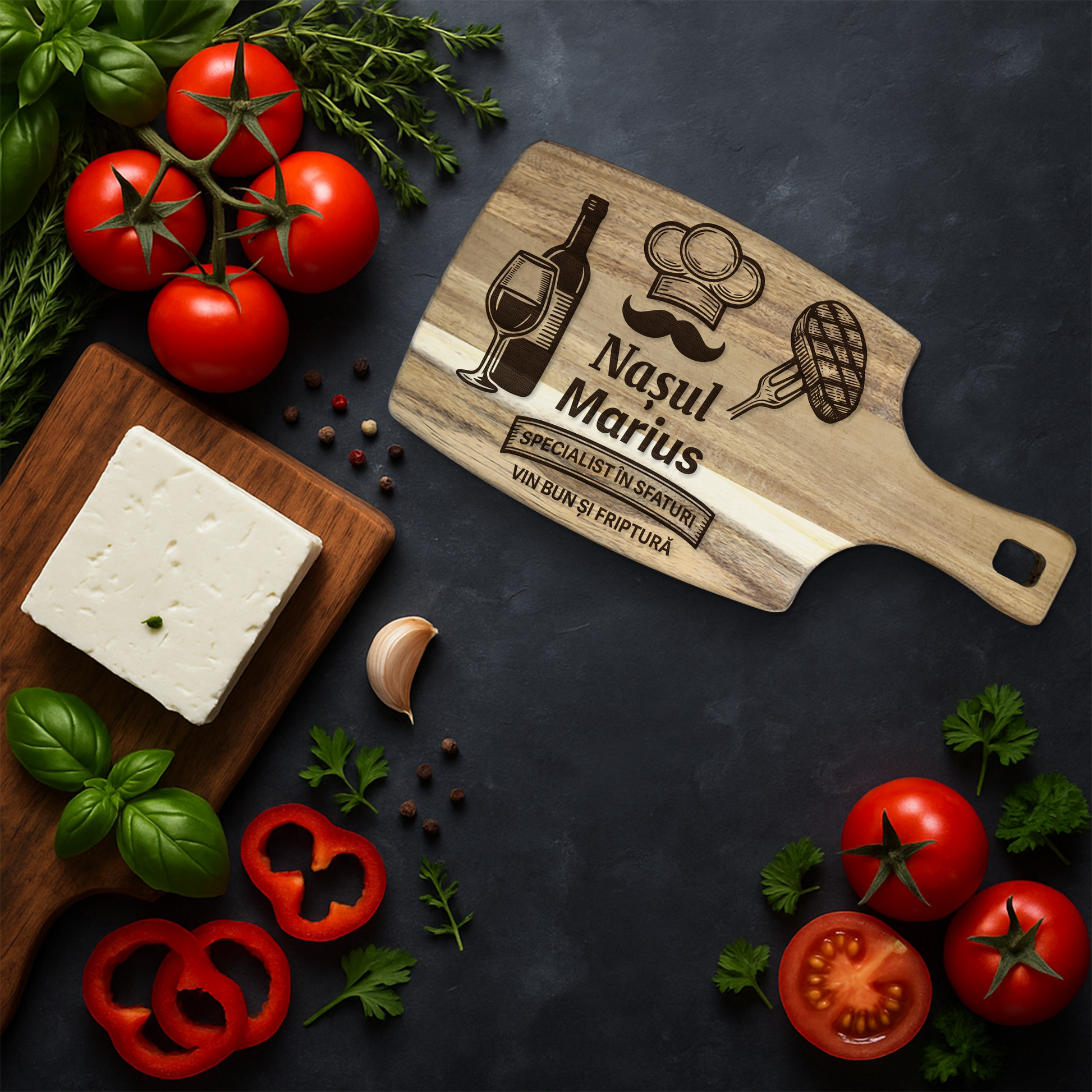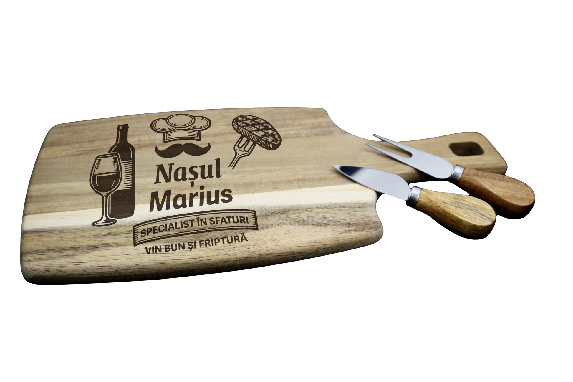 Tocător Acacia Brânzeturi Premium Personalizat – Nașul specialist