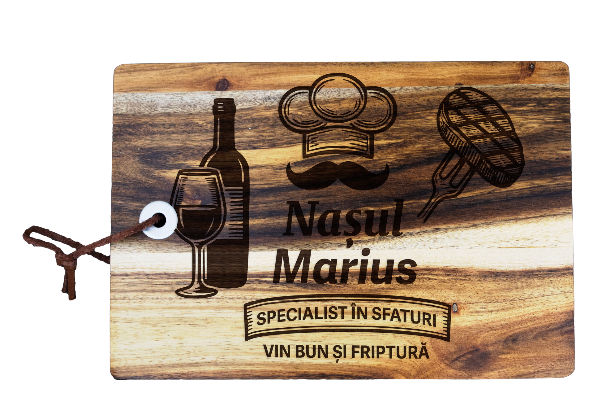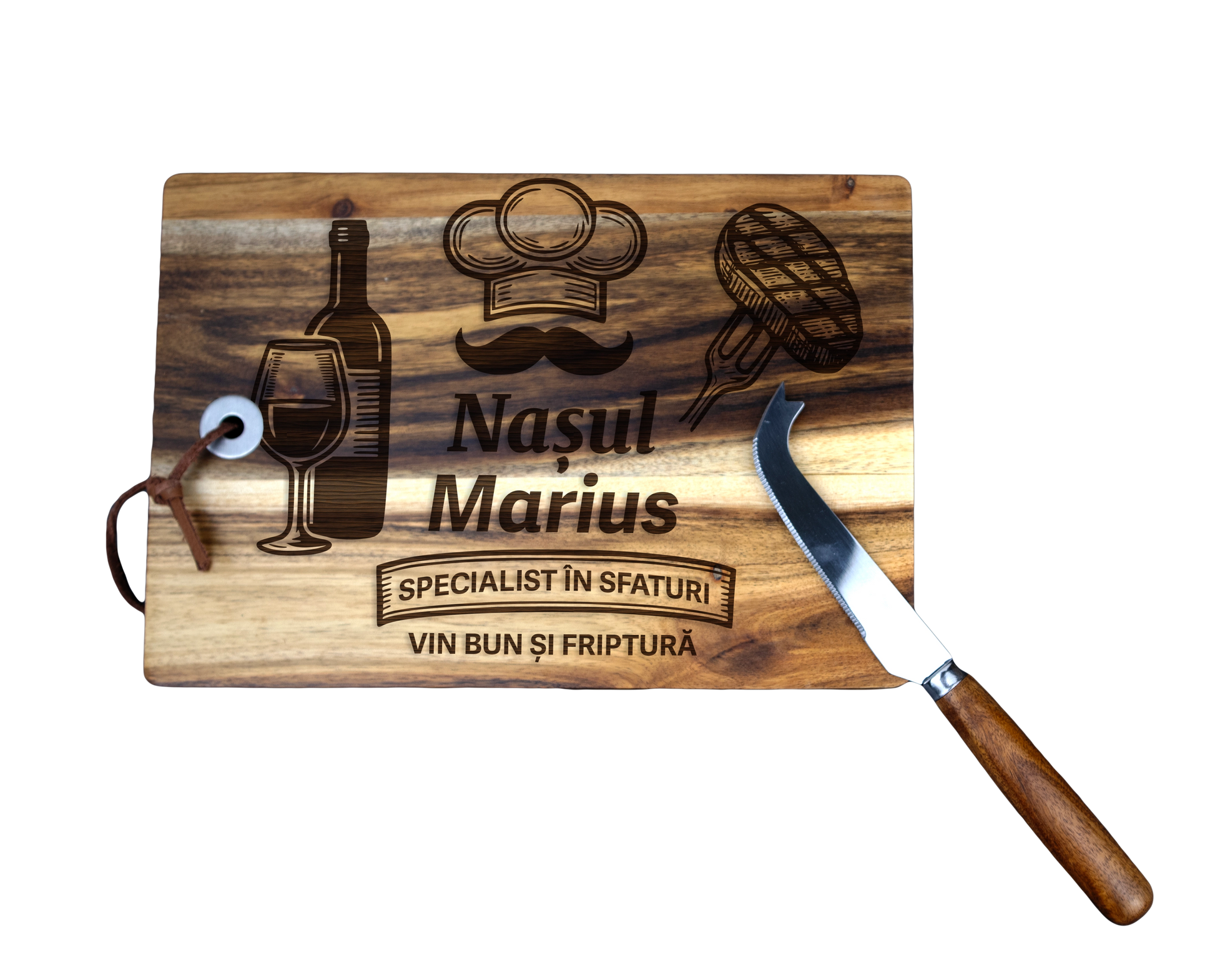 Tocator din lemn Acacia pentru branzeturi personalizat - Nasul specialist