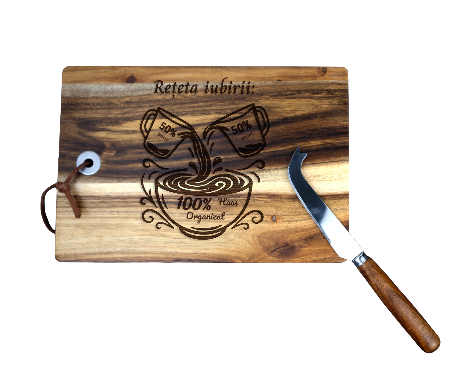 Tocator din lemn Acacia pentru branzeturi personalizat - Reteta iubirii