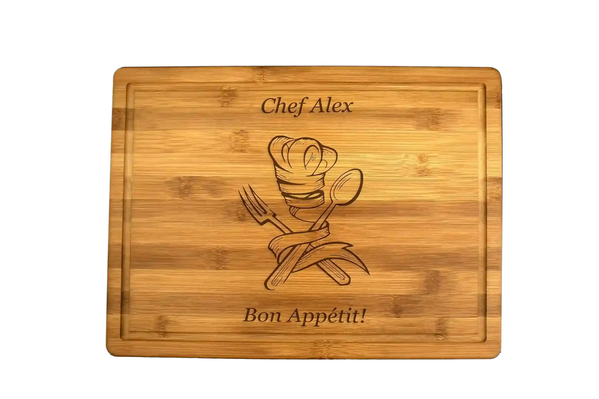 Gravură laser „Design Bucătar” pe bambus rezistent