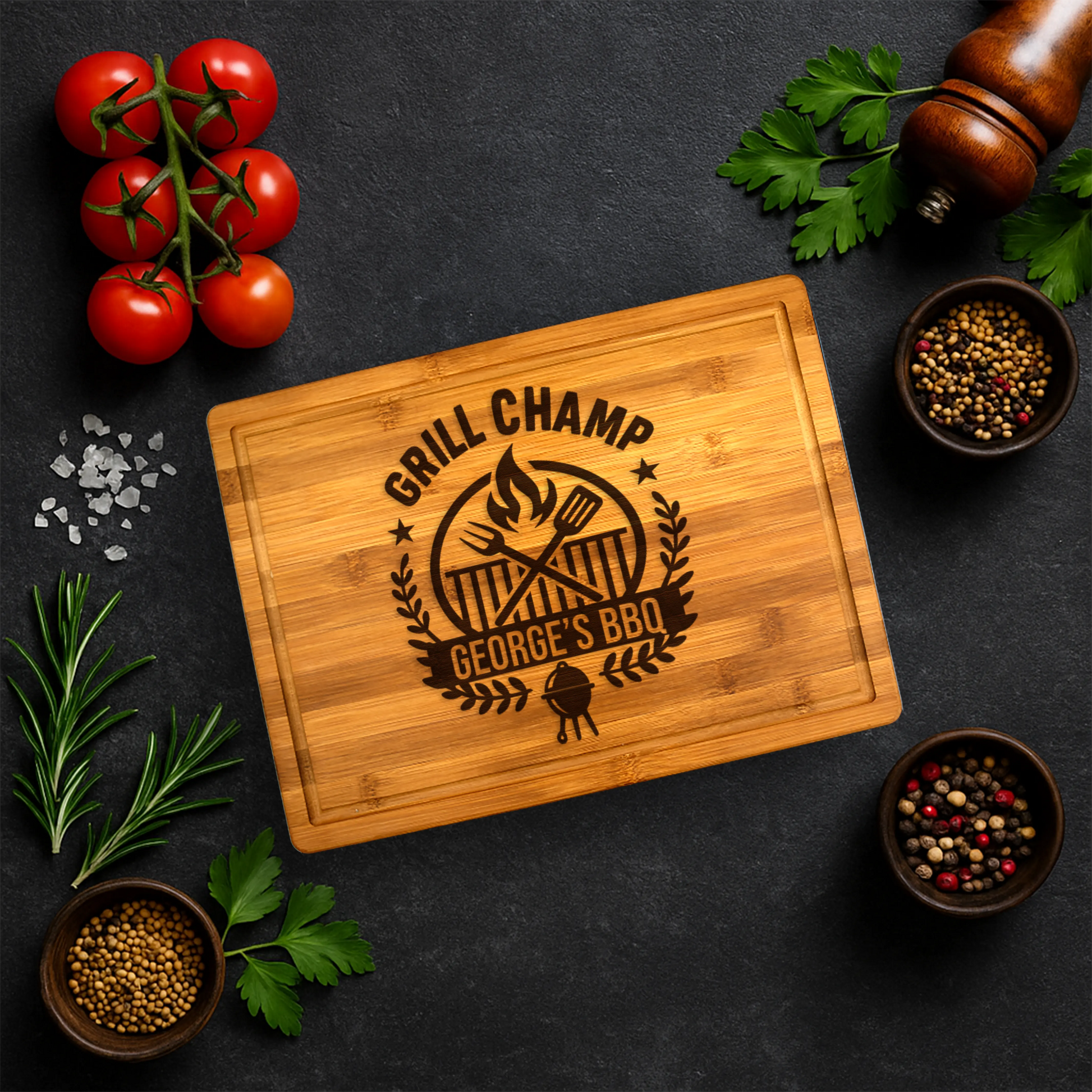 Alege un tocător care îmbină estetica rafinată cu funcționalitatea zilnică. Modelul «Grill Champ» este realizat din bambus matur, provenit din surse sustenabile, cunoscut pentru densitatea ridicată și rezistența la umiditate. Fiecare fibră de bambus este presată la temperaturi controlate pentru a crea o suprafață compactă, ideală pentru utilizare intensă. Gravura laser de înaltă precizie transformă placa într-o piesă unică, perfectă atât pentru tocare cât și pentru servire direct pe masă, aducând un plus de autenticitate experienței culinare.