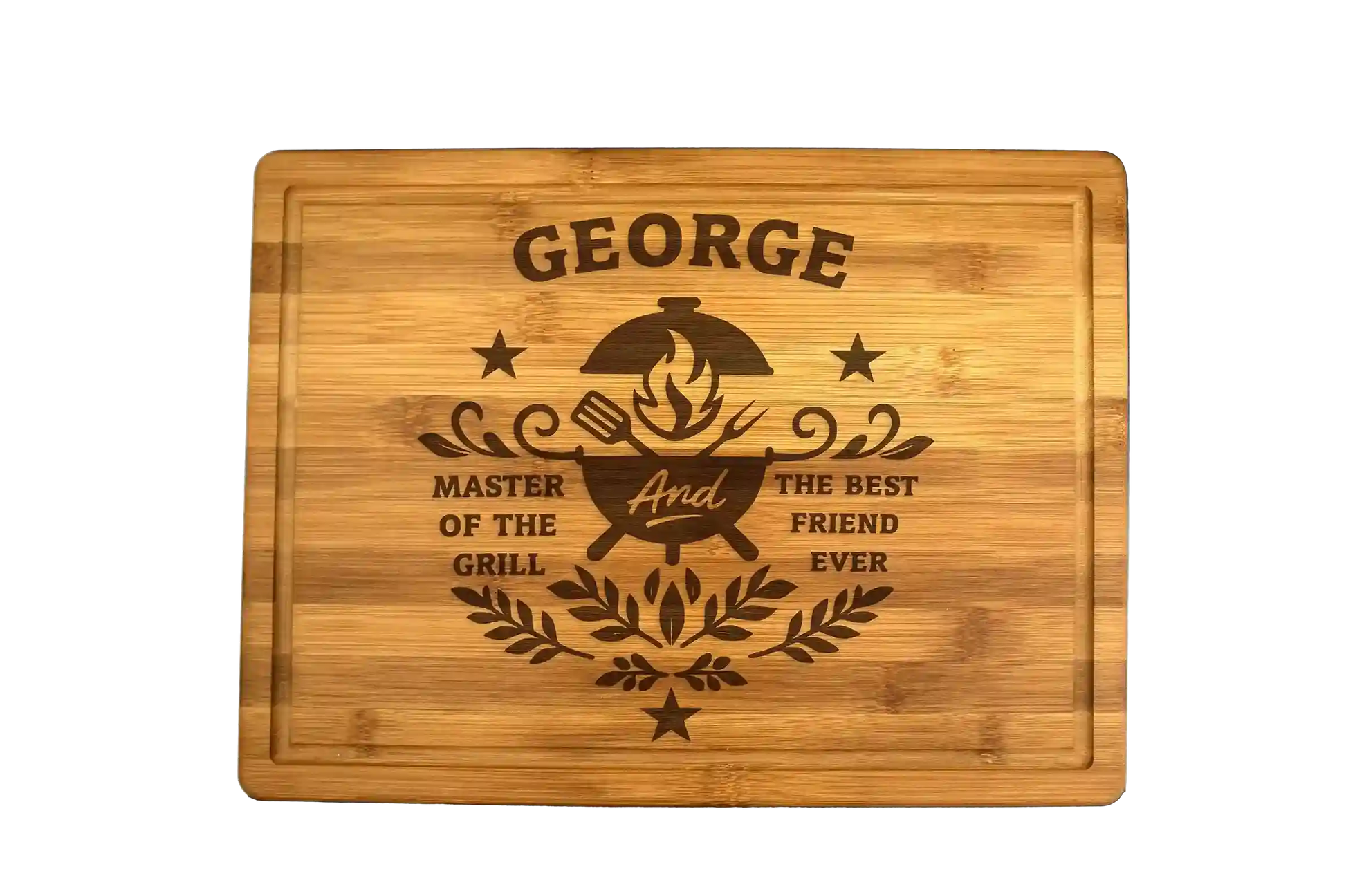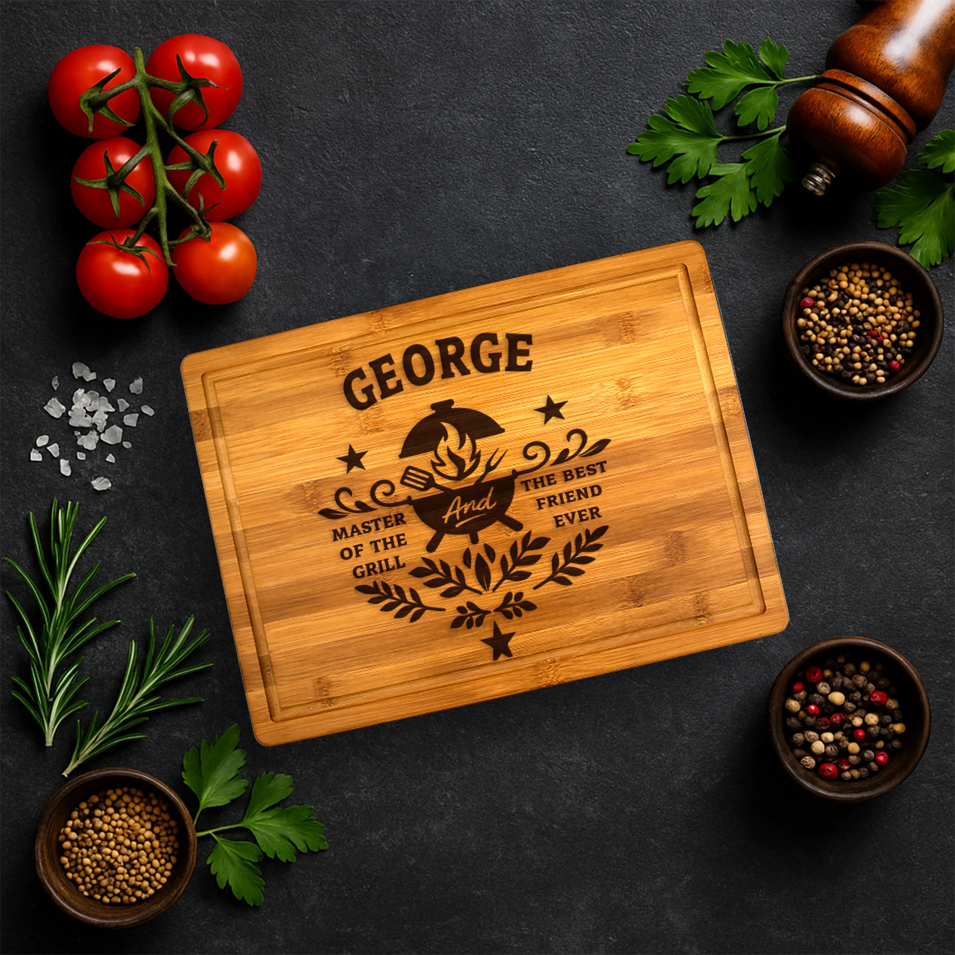 Alege un tocător care îmbină estetica rafinată cu funcționalitatea zilnică. Modelul «Master of the grill» este realizat din bambus matur, provenit din surse sustenabile, cunoscut pentru densitatea ridicată și rezistența la umiditate. Fiecare fibră de bambus este presată la temperaturi controlate pentru a crea o suprafață compactă, ideală pentru utilizare intensă. Gravura laser de înaltă precizie transformă placa într-o piesă unică, perfectă atât pentru tocare cât și pentru servire direct pe masă, aducând un plus de autenticitate experienței culinare.