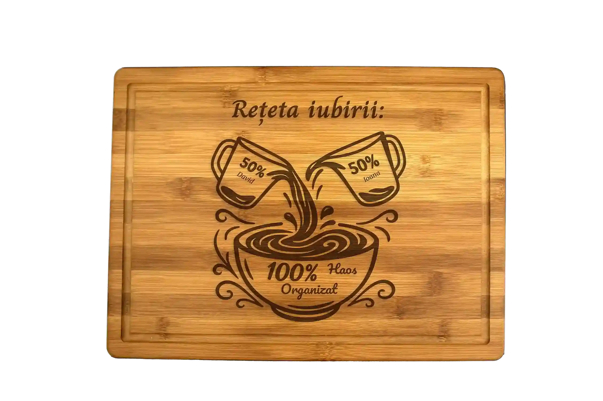 Gravură laser „Rețeta iubirii” pe bambus rezistent